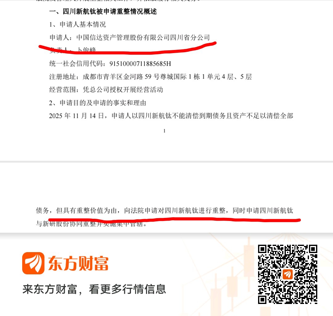 $*ST新研(SZ300159)$ 中国信达资产管理有限公司是代表谁?知道其中的道理,就不怕,此时他敢出来申请重整,会傻?,破产对其也是损失。