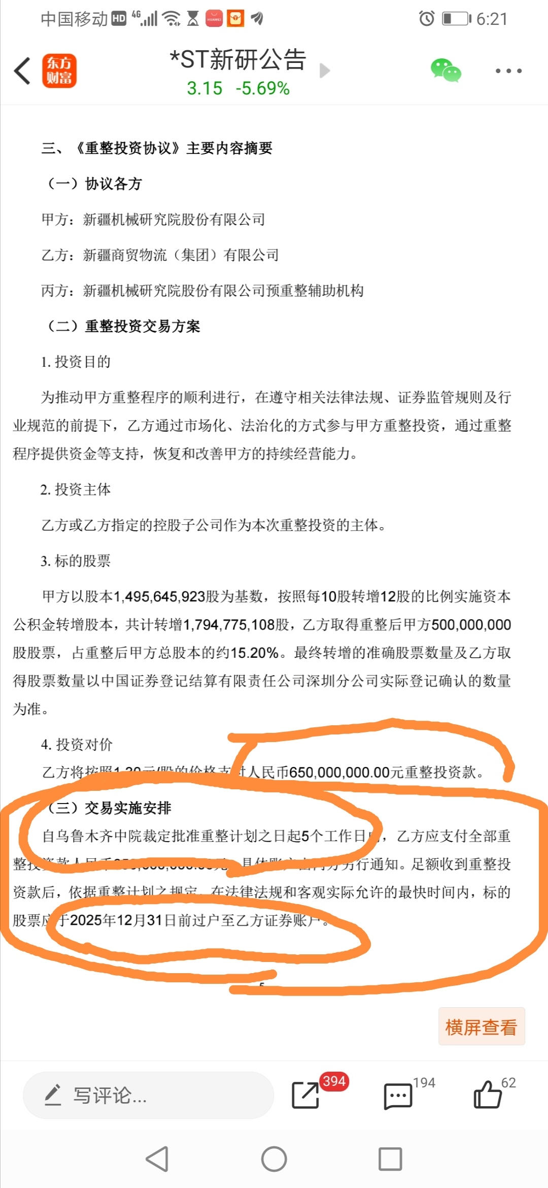 5个工作日从17后就要给尾款6个亿打给公司。12月31号前5亿股过户给国资委