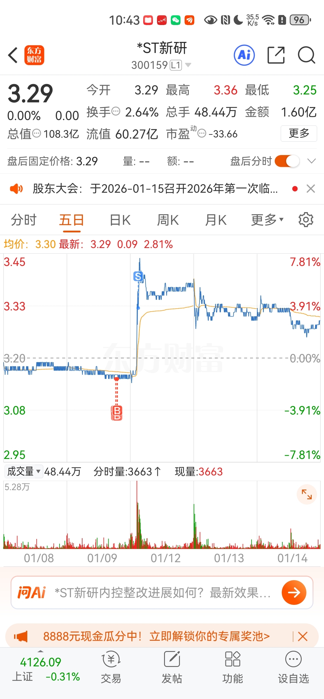 $*ST新研(SZ300159)$ 准备好补仓,继续拉升上去