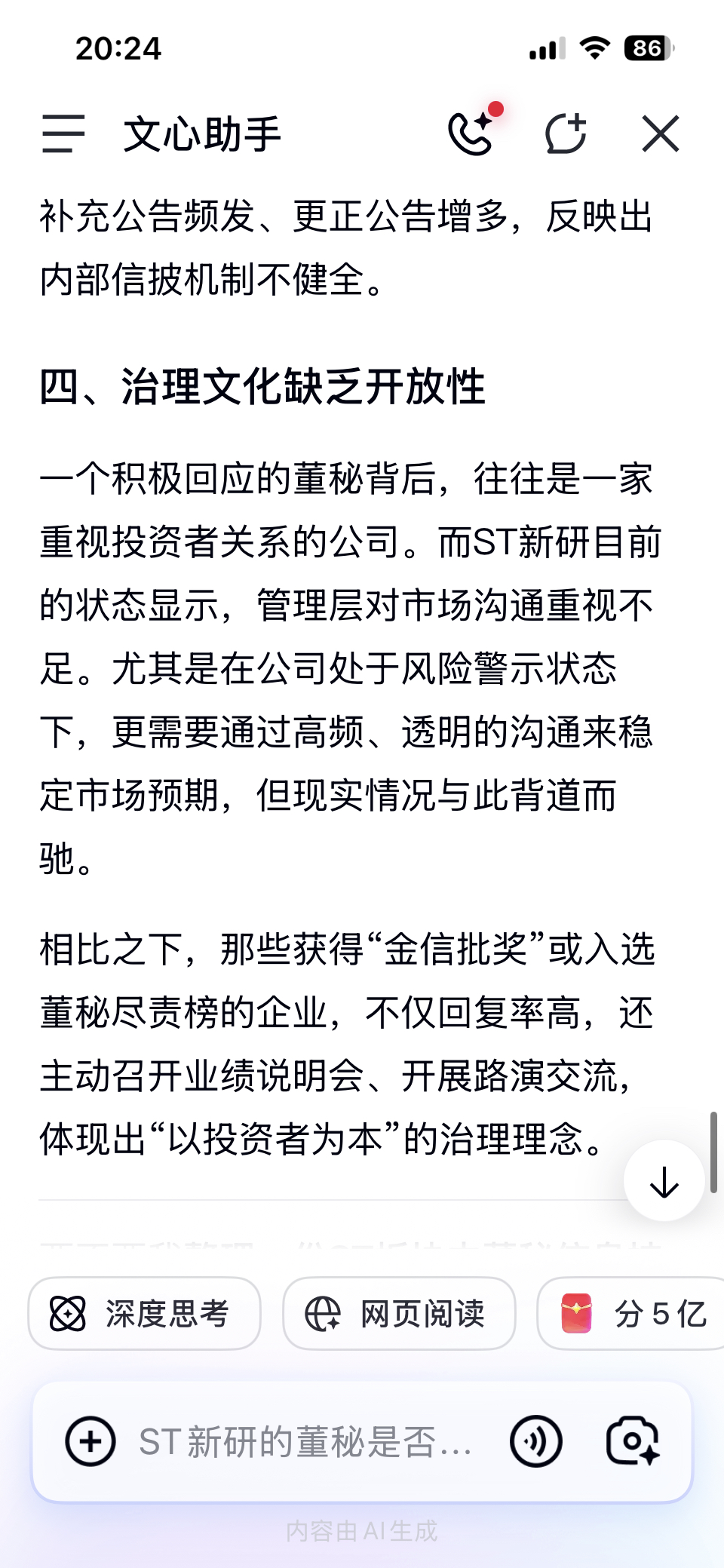 我发现ST新研的管理不怎样?董秘也不称职?你们怎么看?
