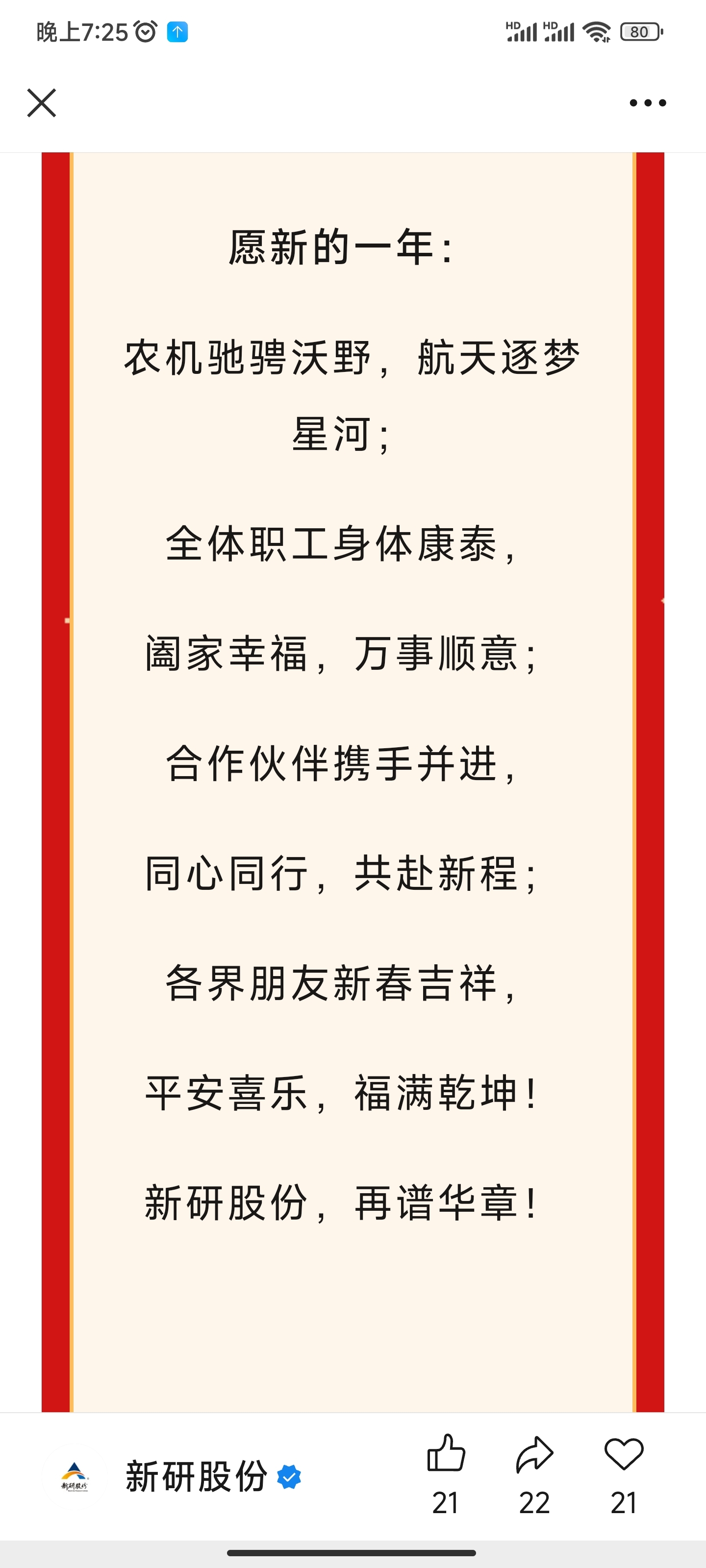 $*ST新研(SZ300159)$ 新年祝词厉害,农机、航天逐梦星河