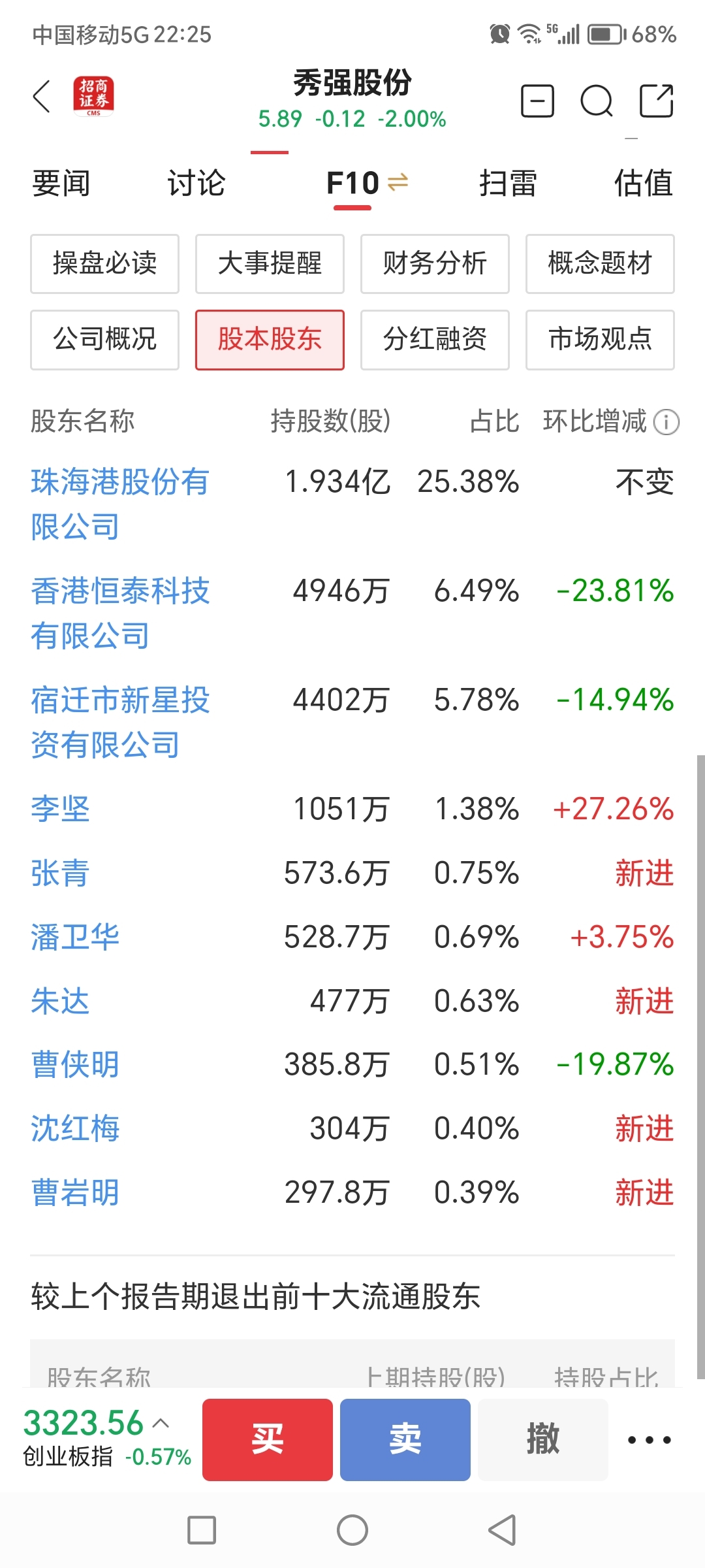 $秀强股份(SZ300160)$ 第五大股东到第十大股东都是刚进来不久的,除了曹侠明之外。这几个加起来也有几千万股,二个亿的资金,它们的成本都5元多,为什么只建仓不拉呢?大家想想,什么问题?