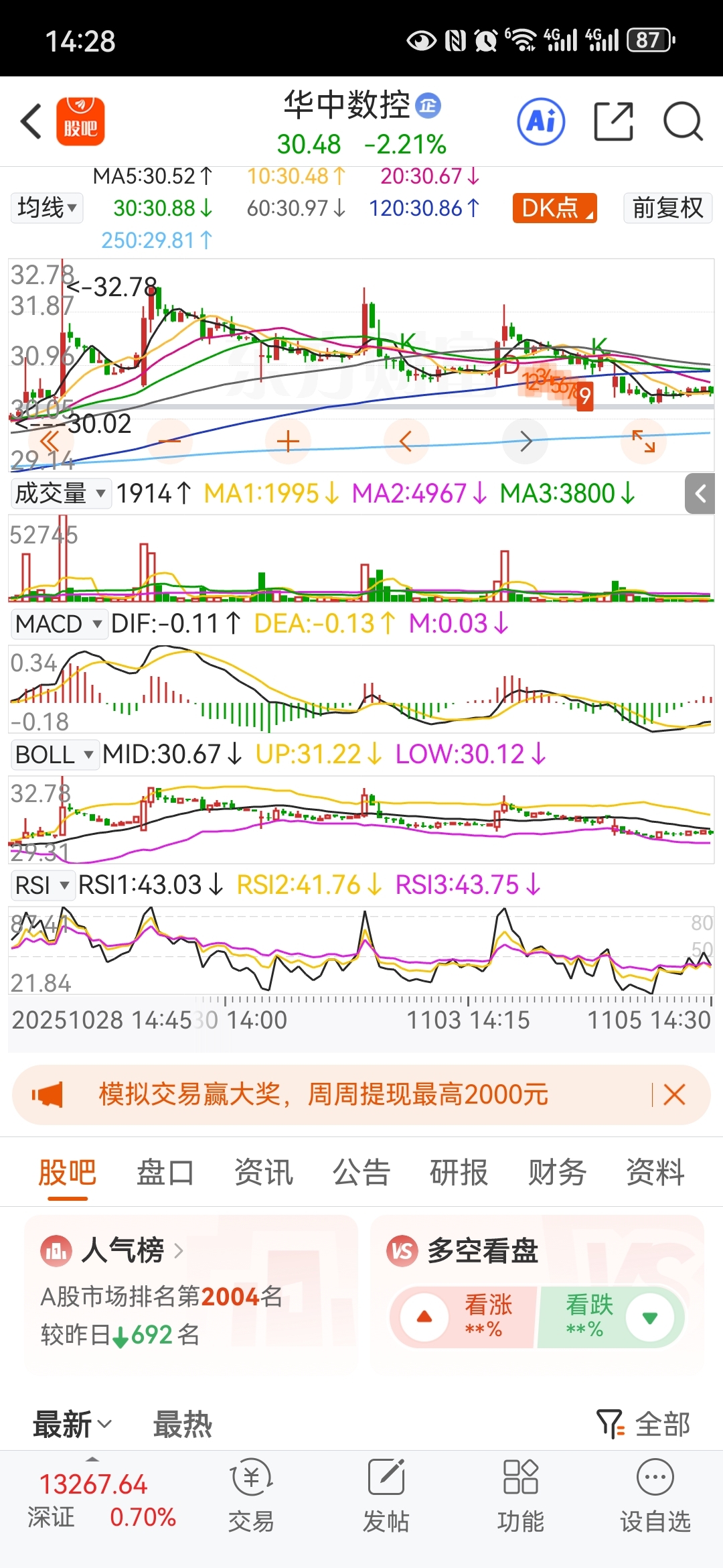 $华中数控(SZ300161)$ 这个图形叫啥来?是不是急拉缓跌是出货?