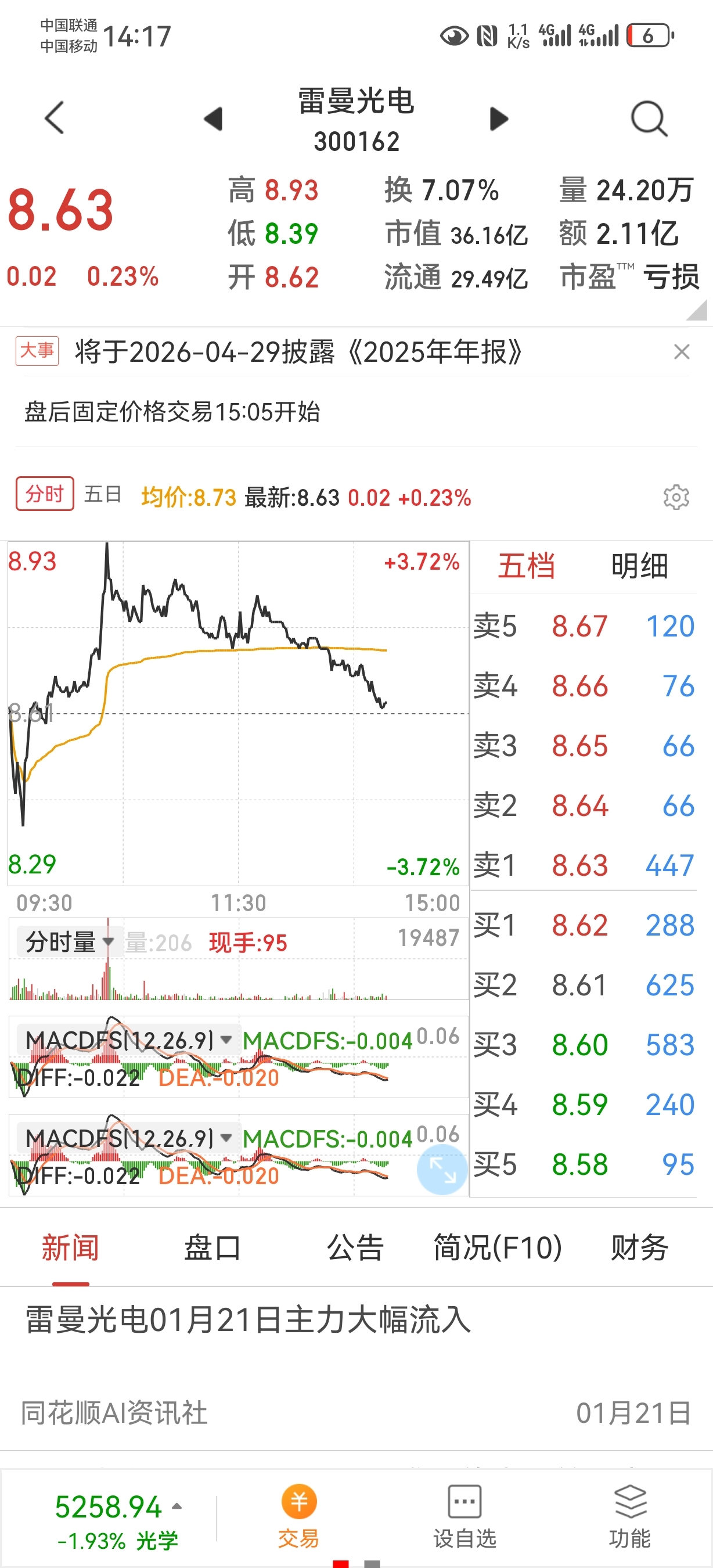 $雷曼光电(SZ300162)$ 不求你涨多少,只求个收个红盘都这么难吗?