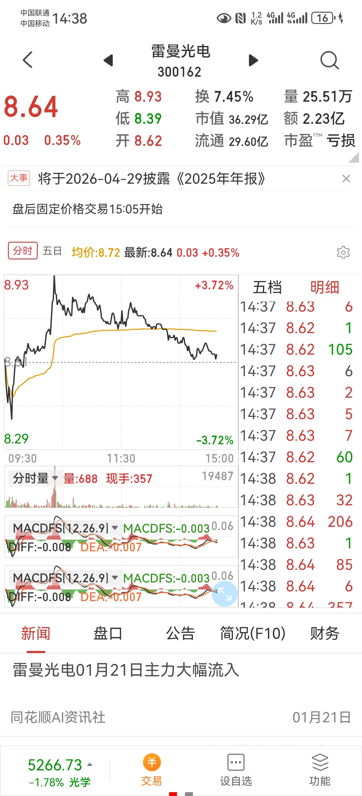 $雷曼光电(SZ300162)$ 有本事你再砸个绿盘收出来
