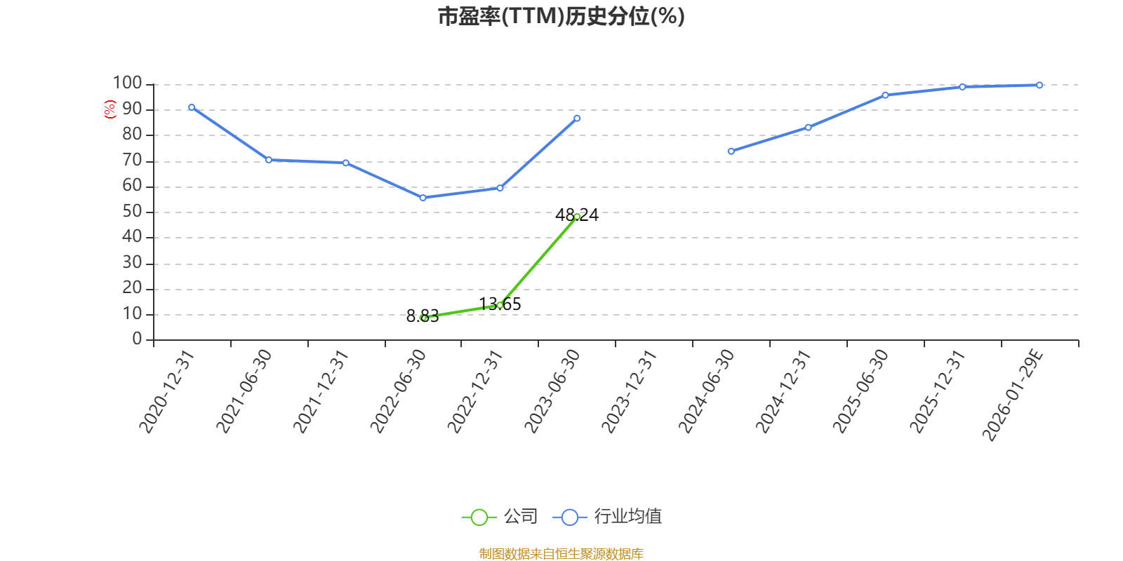 以本次披露业绩预告均值计算,公司近年市盈率(TTM)图如下所示: