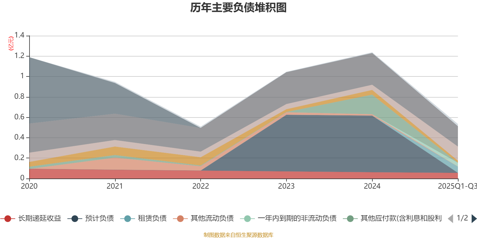 负债重大变化方面,截至2025年三季度末,公司预计负债较上年末减少100%,占公司总资产比重下降9.13个百分点;其他应付款(含利息和股利)较上年末减少99.79%,占公司总资产比重下降3.16个百分点;应付票据及应付账款较上年末减少35.93%,占公司总资产比重下降2个百分点;合同负债较上年末增加171.13%,占公司总资产比重上升1.33个百分点。