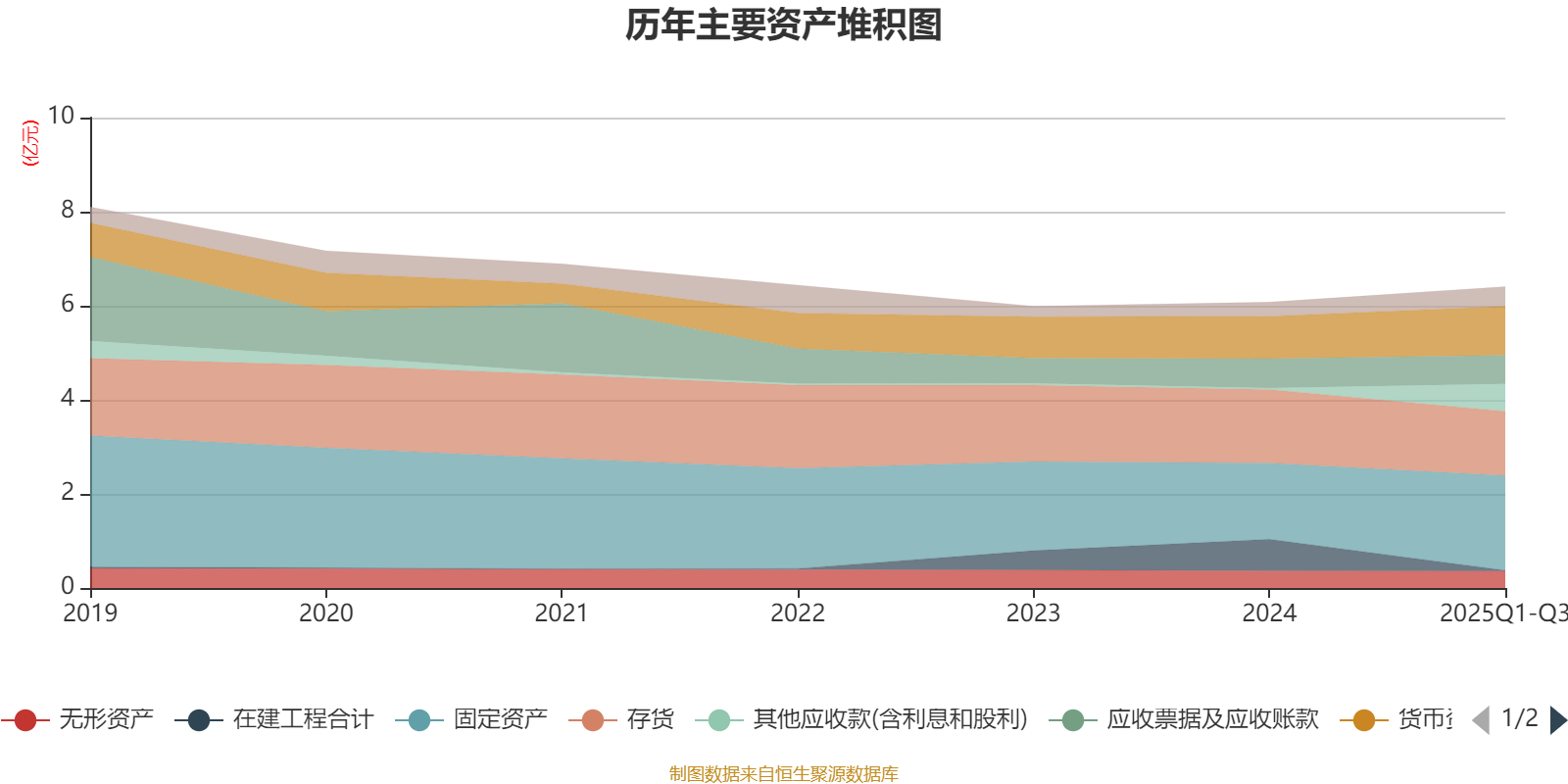 资产重大变化方面,截至2025年三季度末,公司在建工程合计较上年末减少97.28%,占公司总资产比重下降10.75个百分点;其他应收款(含利息和股利)较上年末增加2047.75%,占公司总资产比重上升8.67个百分点;固定资产较上年末增加24.26%,占公司总资产比重上升4.78个百分点;存货较上年末减少12.68%,占公司总资产比重下降4.41个百分点。