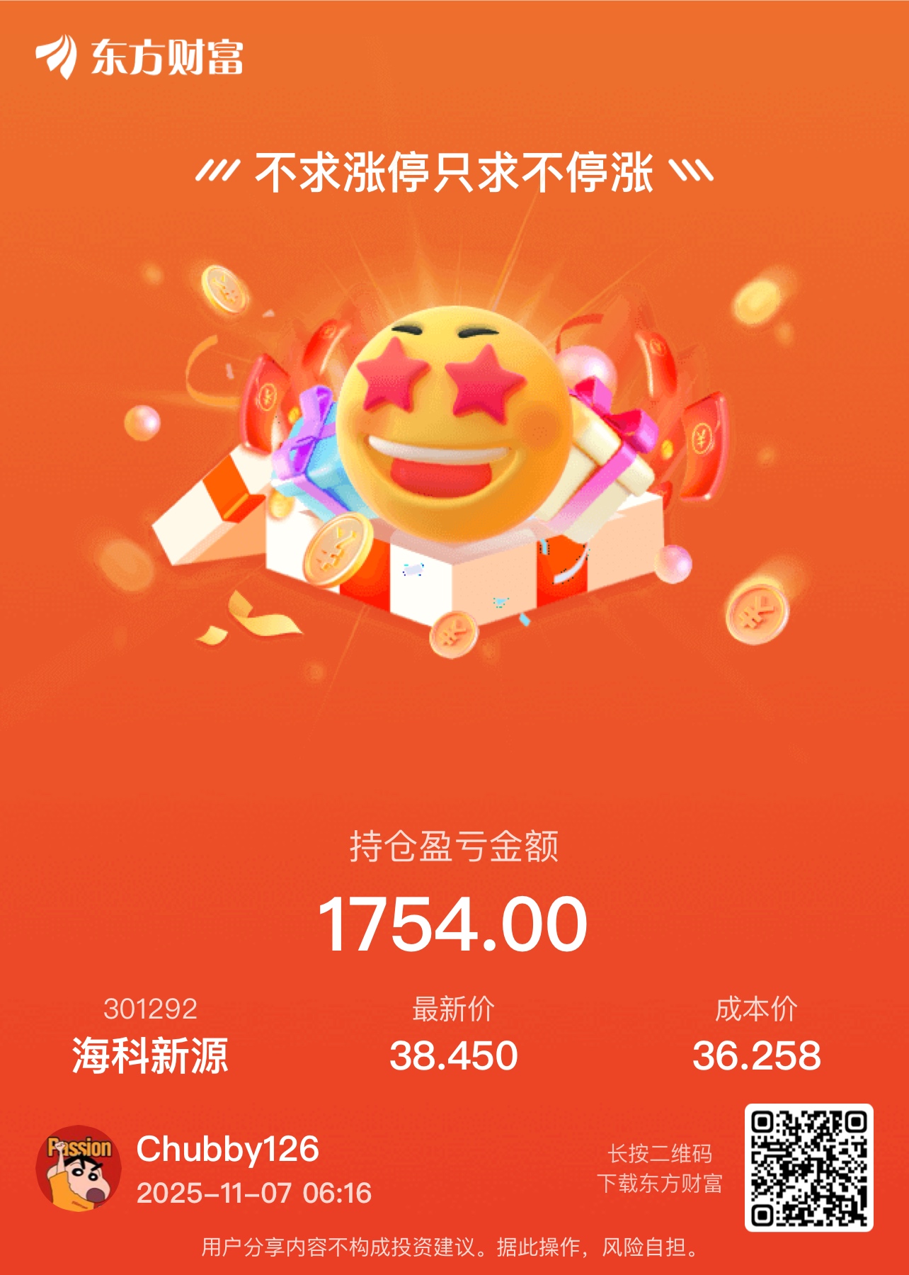 您这话太折煞我了!我这就是运气好,碰巧赶上了,纯属愣头青式操作。真正要学的还是您们这些老股民的耐心和经验,以后还请多指点!