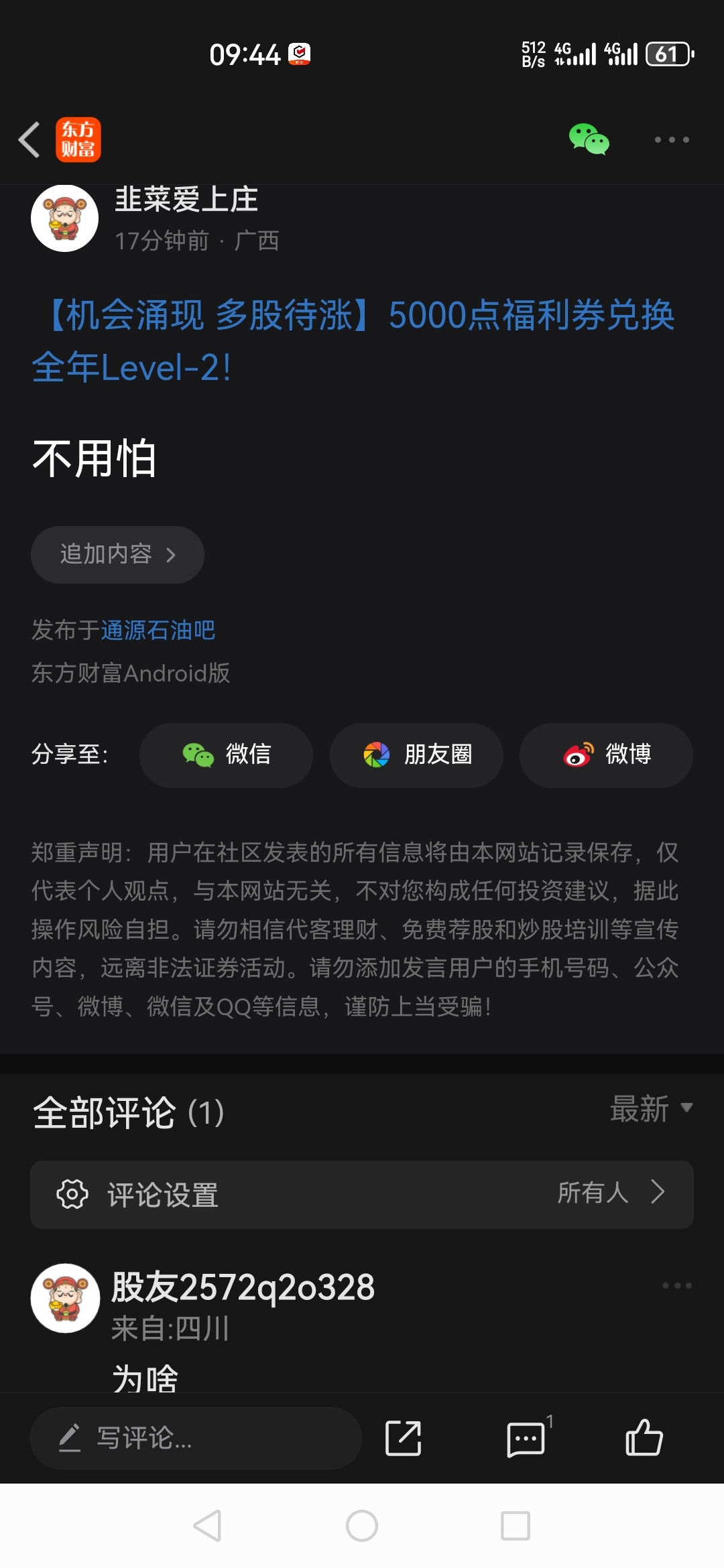 温馨提示: 1.根据《证券法》规定,禁止编造、传播虚假信息或者误导性信息,扰乱证券市场;2.用户在本社区发表的所有资料、言论等仅代表个人观点,与本网站立场无关,不对您构成任何投资建议。用户应基于自己的独立判断,自行决定证券投资并承担相应风险。《东方财富社区管理规定》