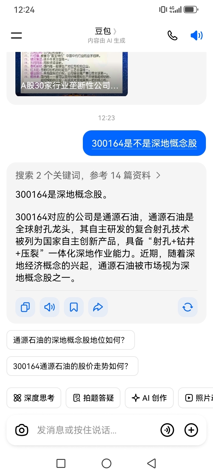 又深地慨念股了,,,深海炒了一波,,深地应该炒作一段时间吧,,最少1个月。看谁是
