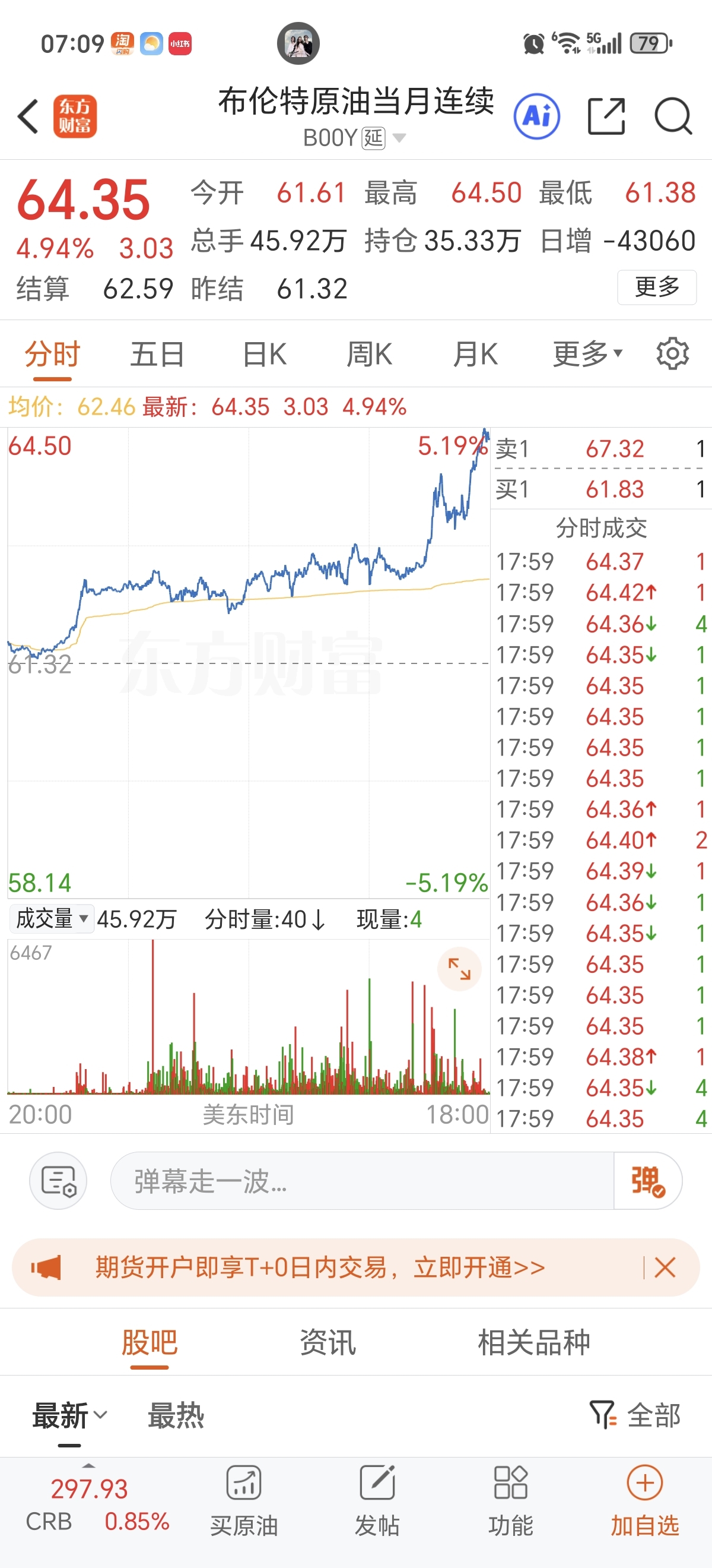 $通源石油(SZ300164)$ 原油大涨!开盘稳了!