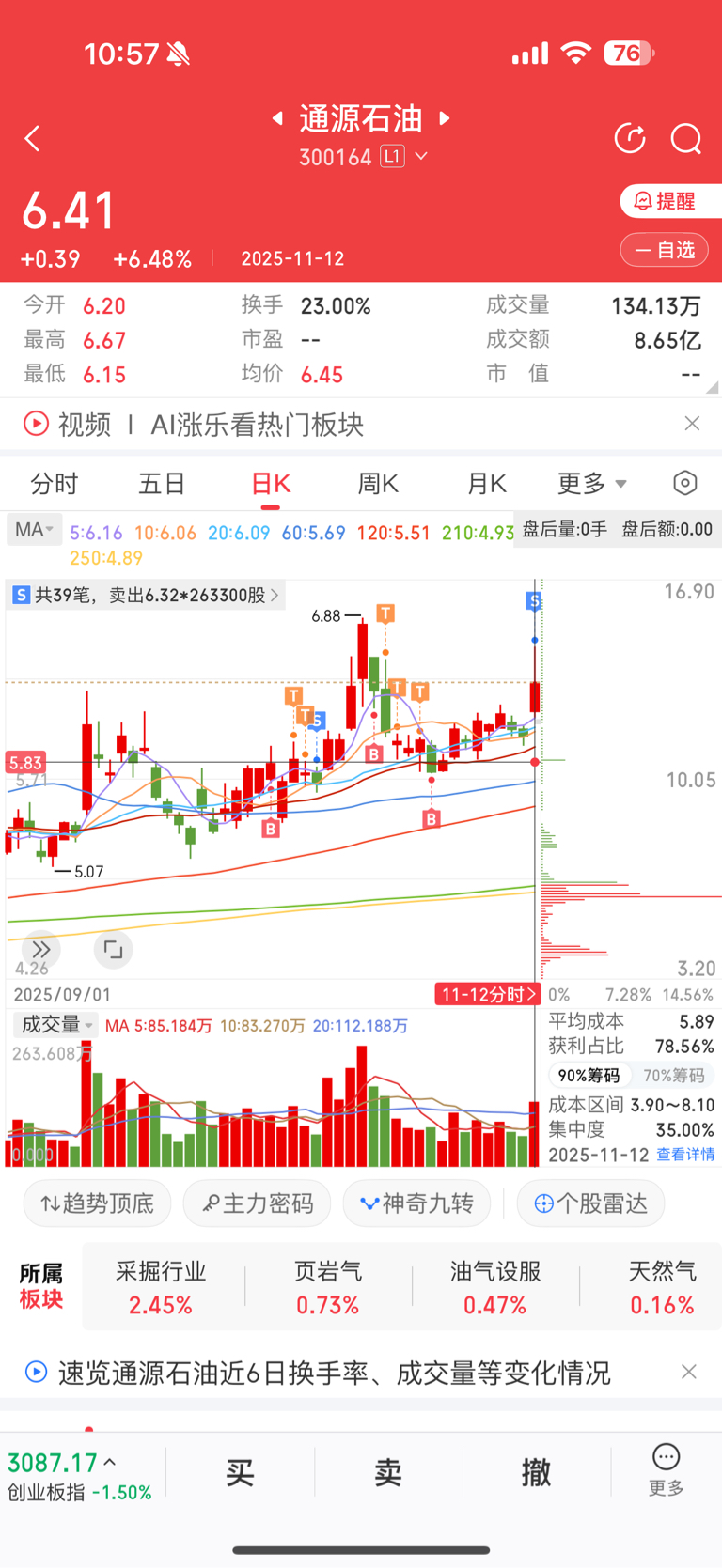 $通源石油(SZ300164)$ 减仓了 穷庄 随便你怎么玩