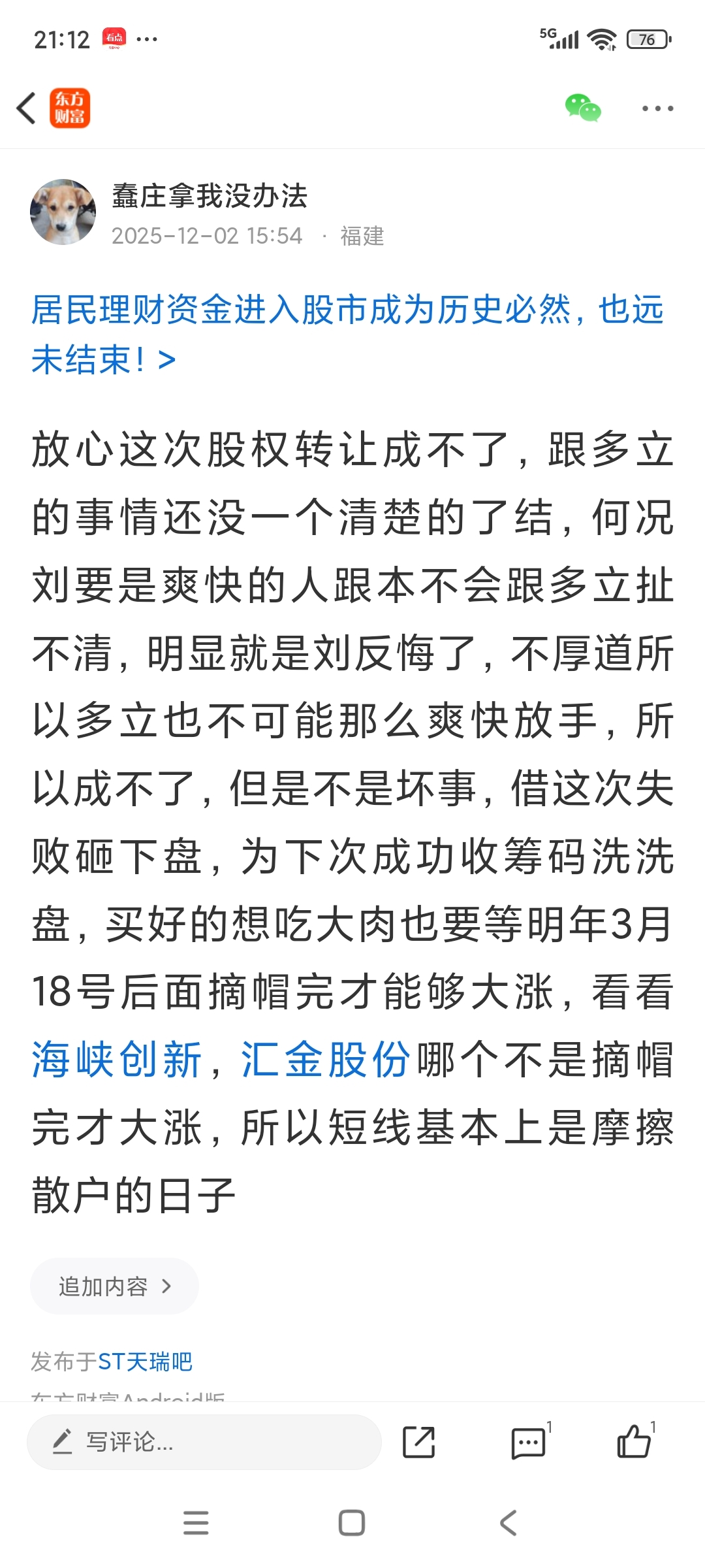 $ST天瑞(SZ300165)$ 上次停牌就预测是因为立多的纠缠没了结,这次跟立多的事情了结了,对招鬼卖壳转让股权没障碍了,。估计过年后,明天大跌先建个底仓