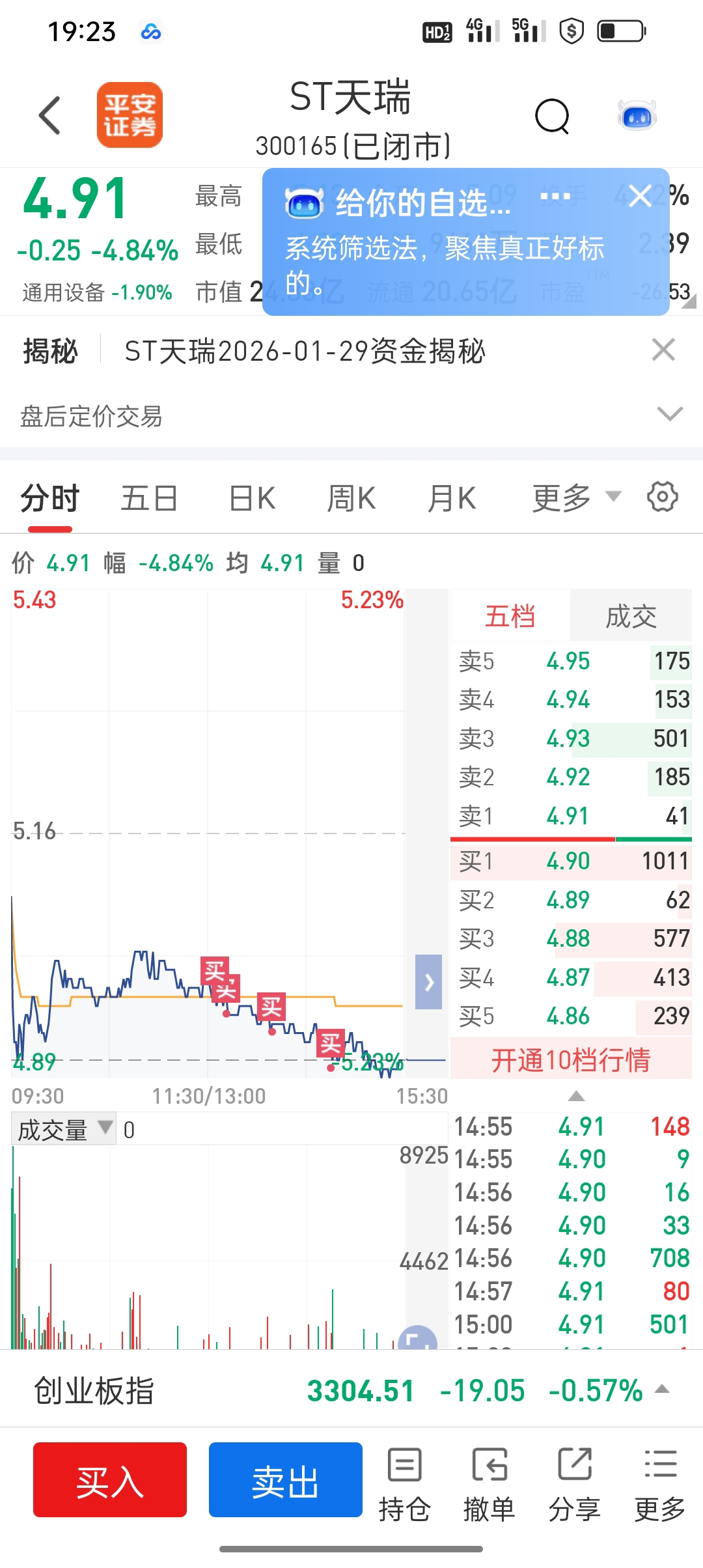 $ST天瑞(SZ300165)$ 跌停板的单子和涨停板的单子都没成交