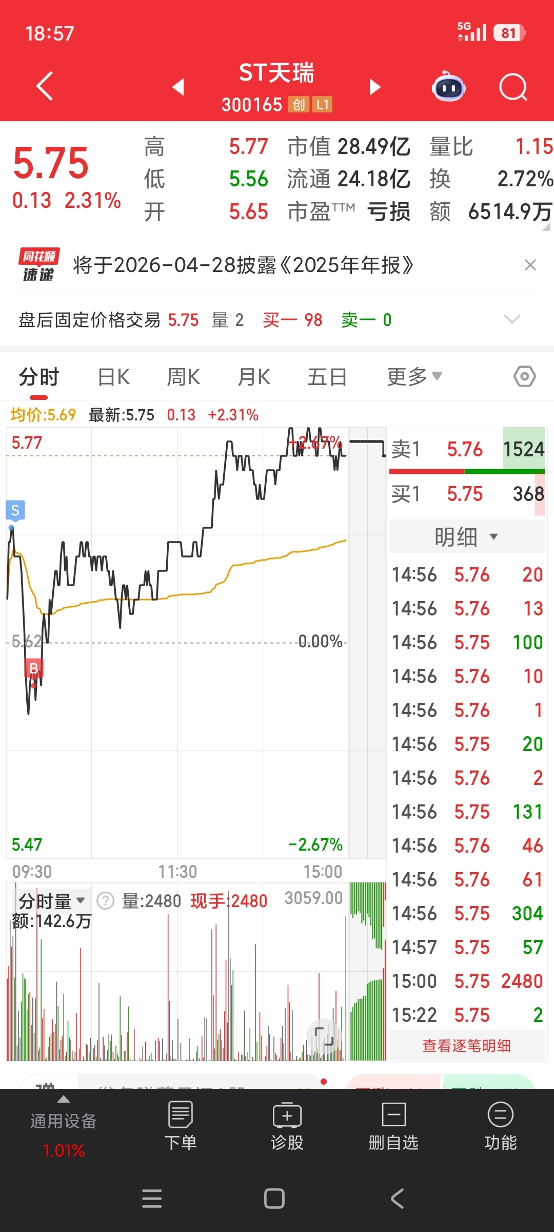 $ST天瑞(SZ300165)$ 昨天这把T是不是很优秀