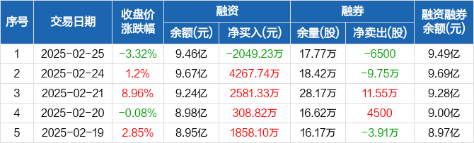 东方国信:融资净偿还2049.23万元,融资余额9.46亿元(02-25)
