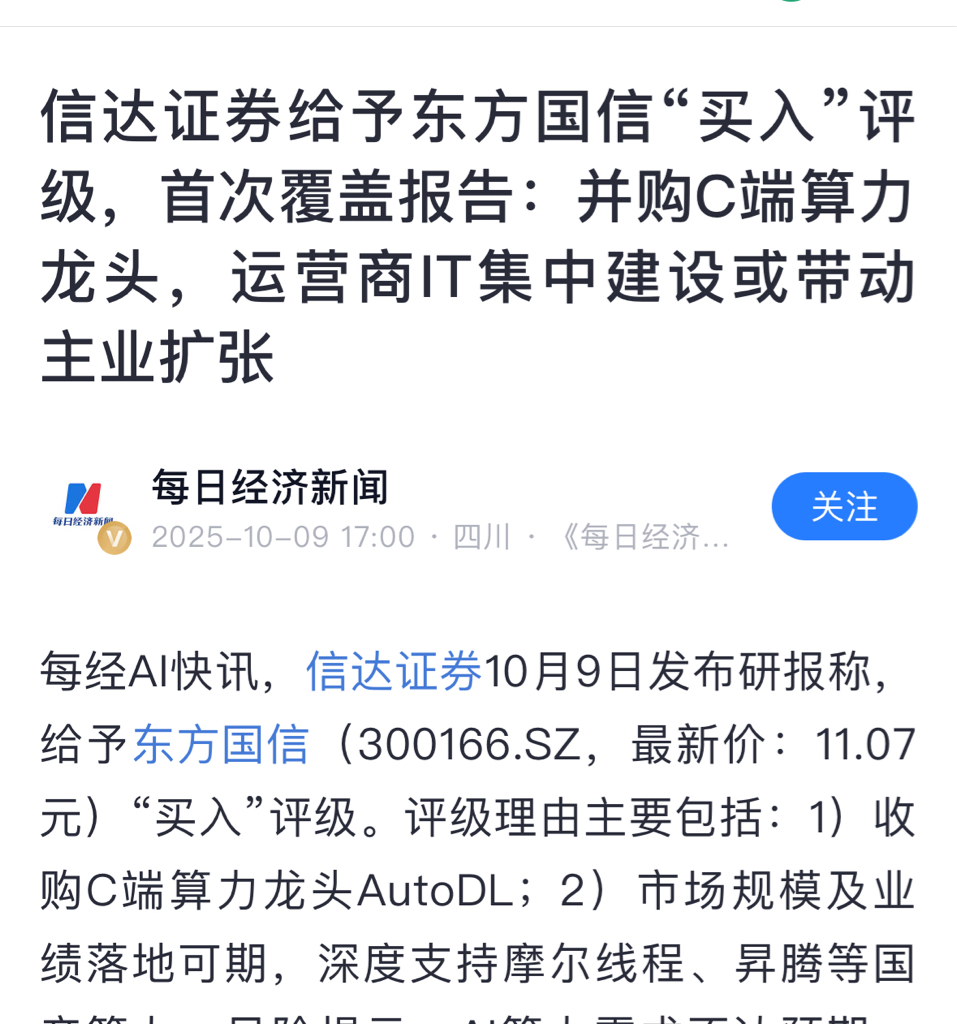 $东方国信(SZ300166)$