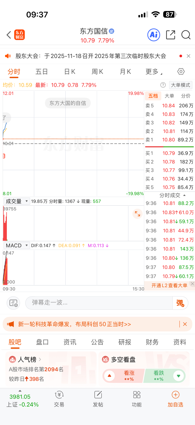 $东方国信(SZ300166)$ 竞价最后五秒才敢挂单,生怕拉高和我抢