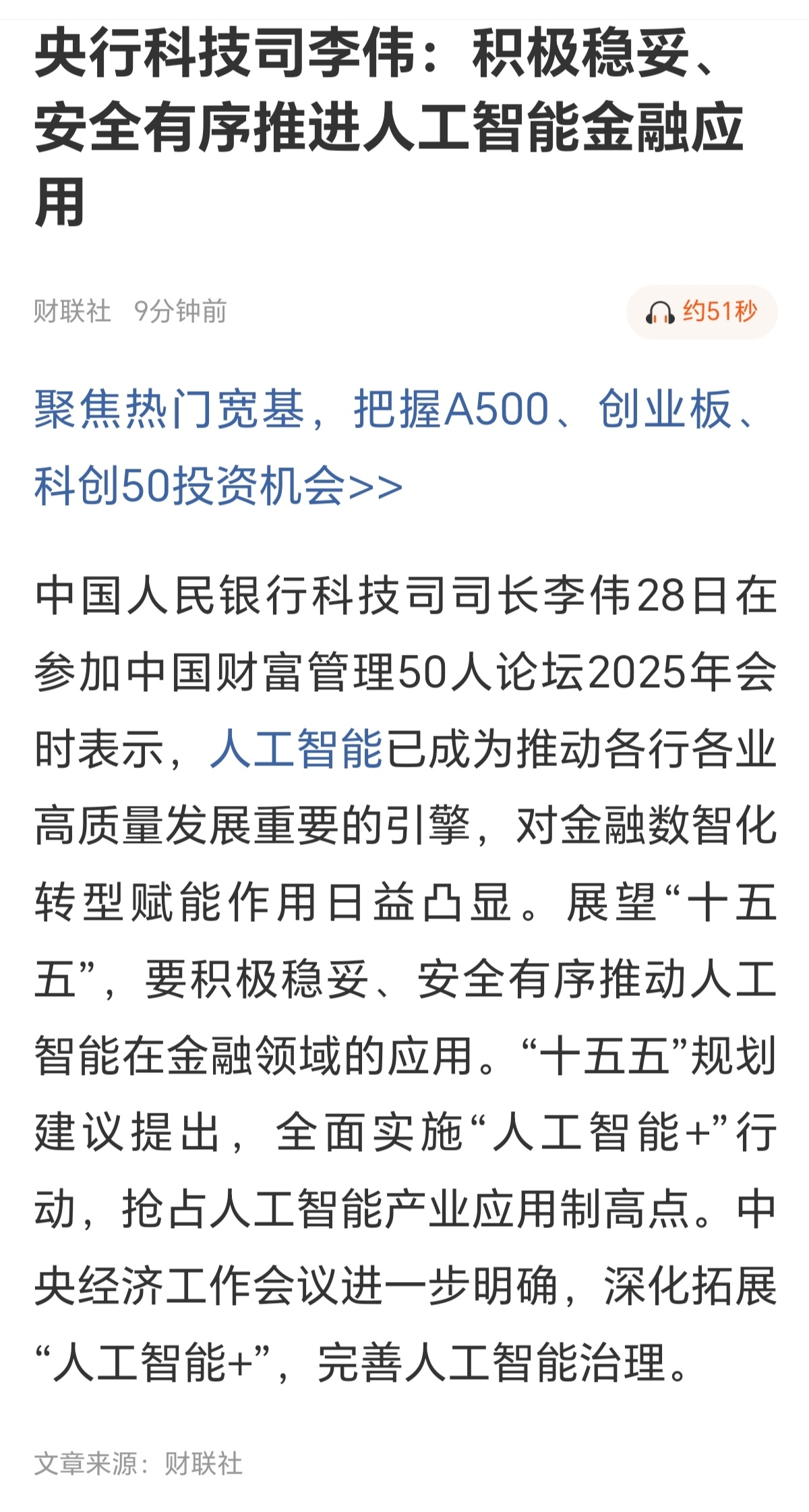 积极推进人工智能金融应用