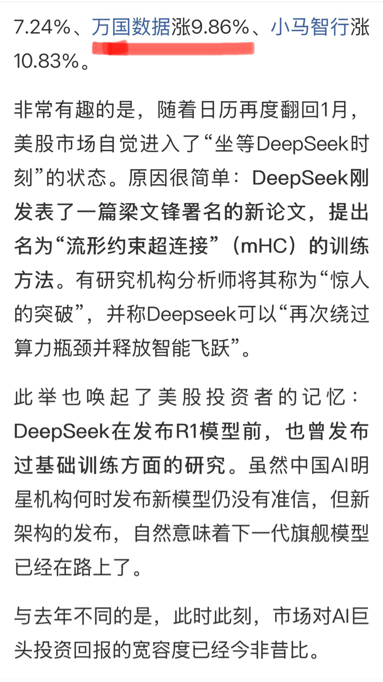 新年伊始,美股科技题材开年大狂欢,迎来DeepSeek时刻,其中互联网数据中心龙头“万国数据”大涨10%