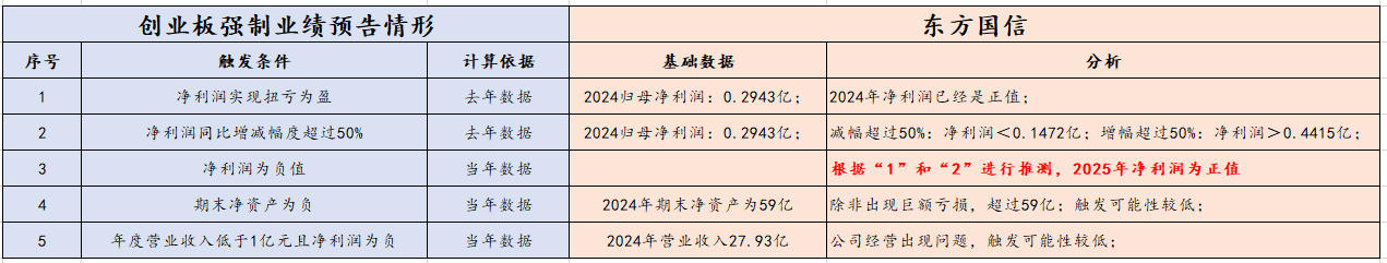 查看了创业板业绩披露原则,在参考去年数据后整理了下,东方国信2025年触发披露的条件,仅是交流无情绪传导;