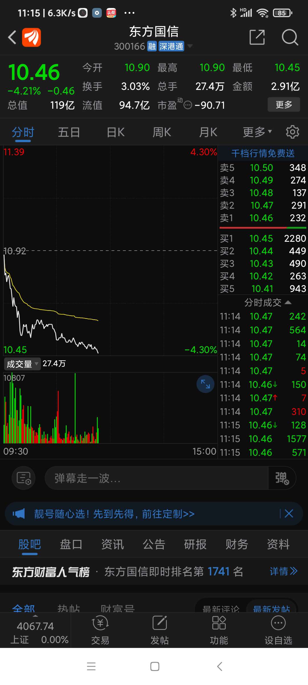 终于补完10.46元的向上跳空缺口,记录一下。