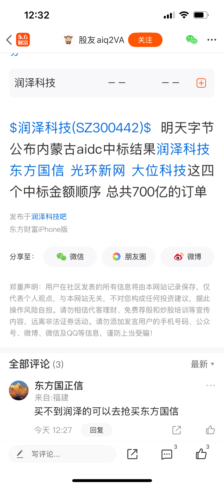 温馨提示: 1.根据《证券法》规定,禁止编造、传播虚假信息或者误导性信息,扰乱证券市场;2.用户在本社区发表的所有资料、言论等仅代表个人观点,与本网站立场无关,不对您构成任何投资建议。用户应基于自己的独立判断,自行决定证券投资并承担相应风险。《东方财富社区管理规定》