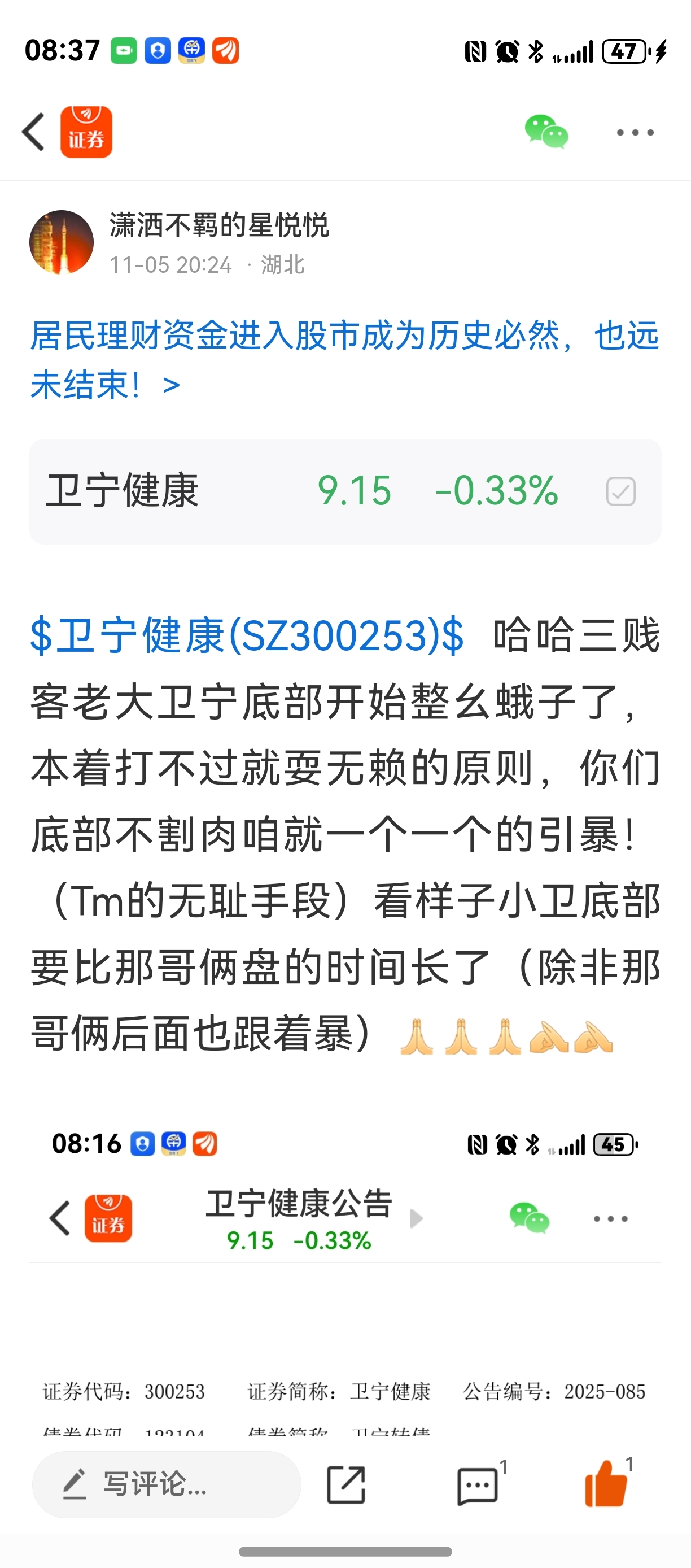 温馨提示: 1.根据《证券法》规定,禁止编造、传播虚假信息或者误导性信息,扰乱证券市场;2.用户在本社区发表的所有资料、言论等仅代表个人观点,与本网站立场无关,不对您构成任何投资建议。用户应基于自己的独立判断,自行决定证券投资并承担相应风险。《东方财富社区管理规定》