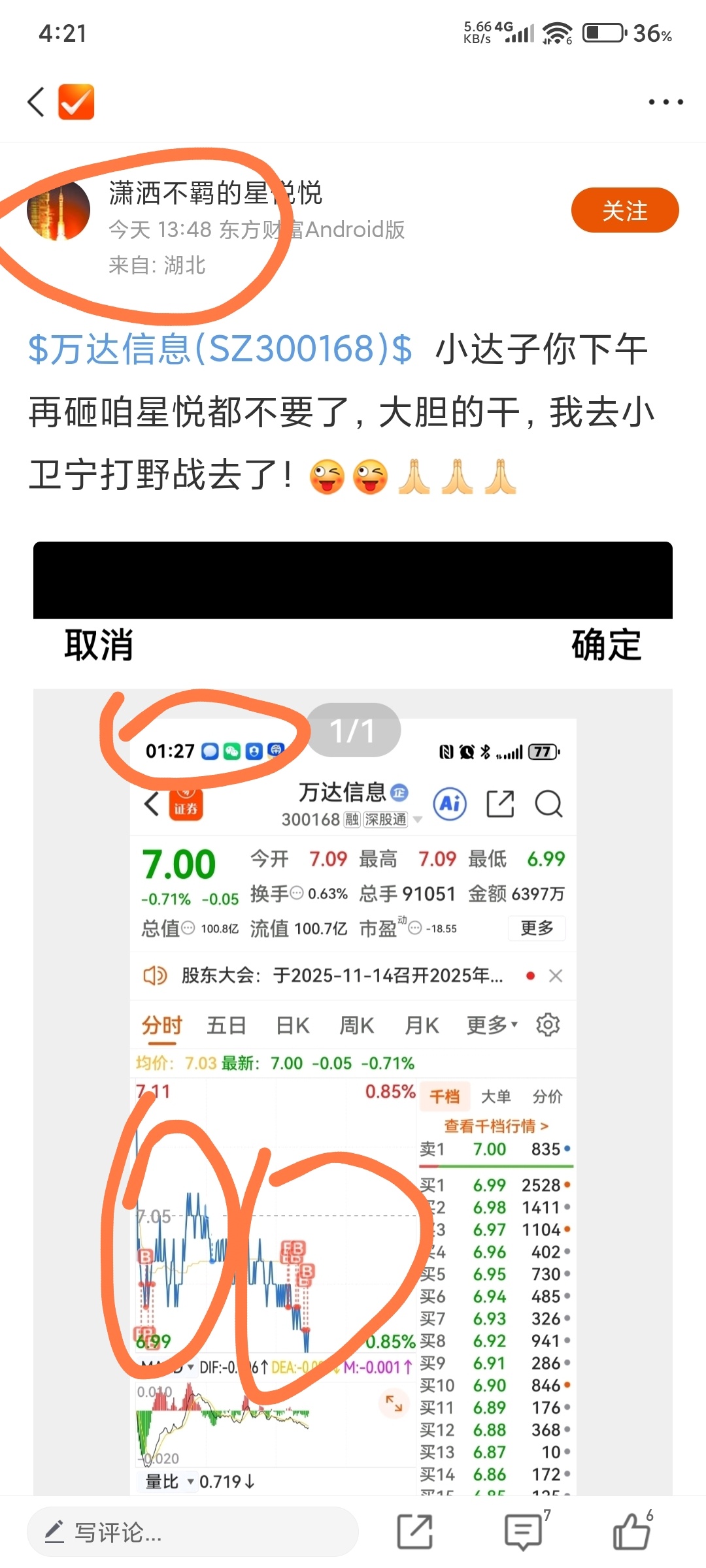 $万达信息(SZ300168)$ 晒上午bb的买点,下午立马关了bs开关,这家伙明显在做空万达
