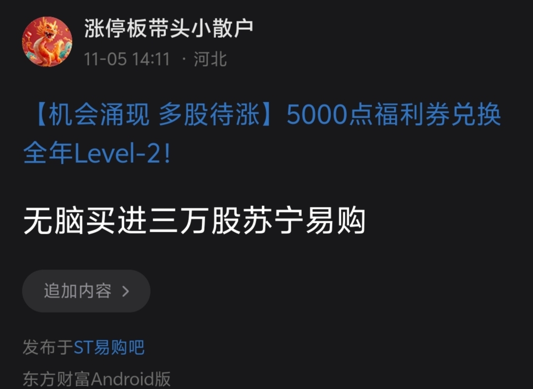 温馨提示: 1.根据《证券法》规定,禁止编造、传播虚假信息或者误导性信息,扰乱证券市场;2.用户在本社区发表的所有资料、言论等仅代表个人观点,与本网站立场无关,不对您构成任何投资建议。用户应基于自己的独立判断,自行决定证券投资并承担相应风险。《东方财富社区管理规定》