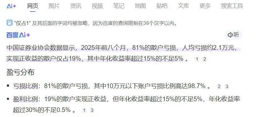 周末快乐,这是ai搜索的前八月股民收益率。我认识一个大户,1-9月盈利67%,1
