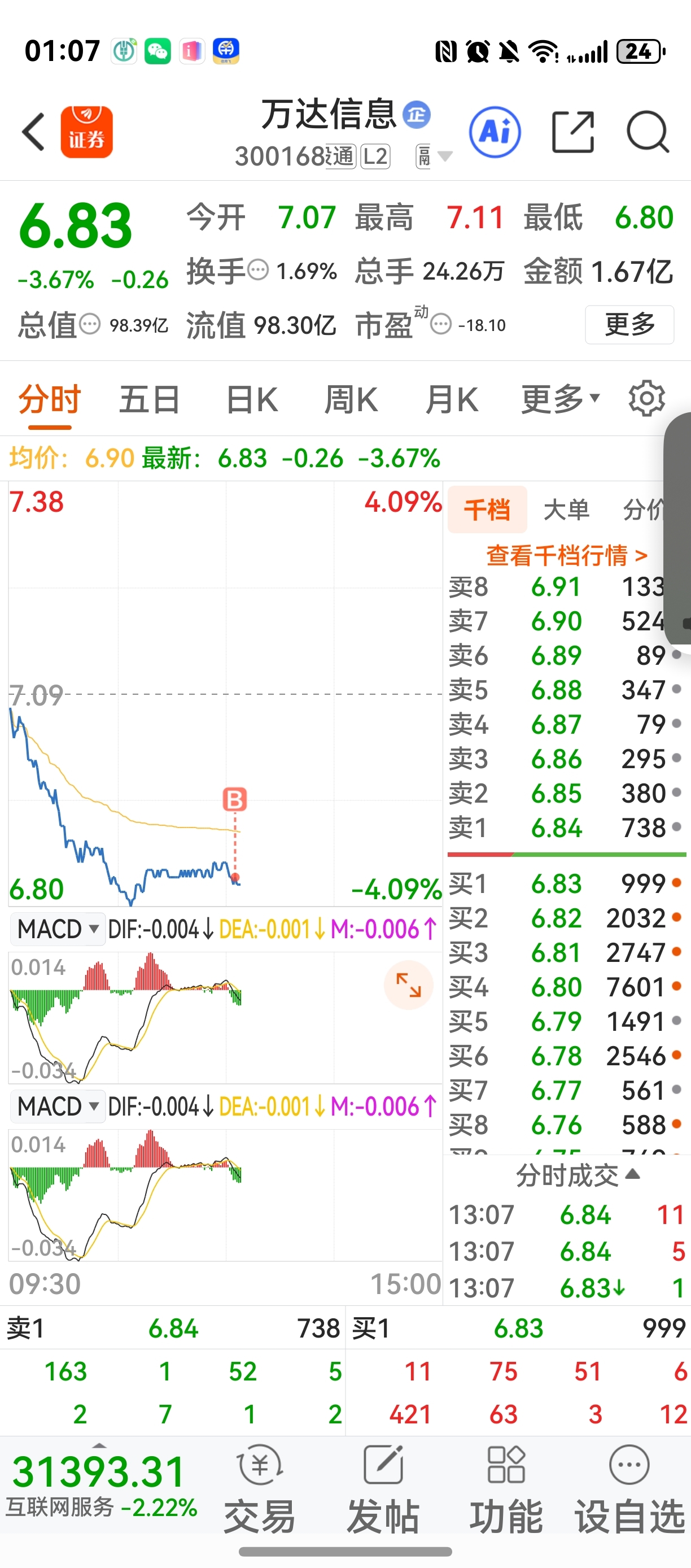 $万达信息(SZ300168)$ 星悦说过,打下来就接,而且是只接不T!