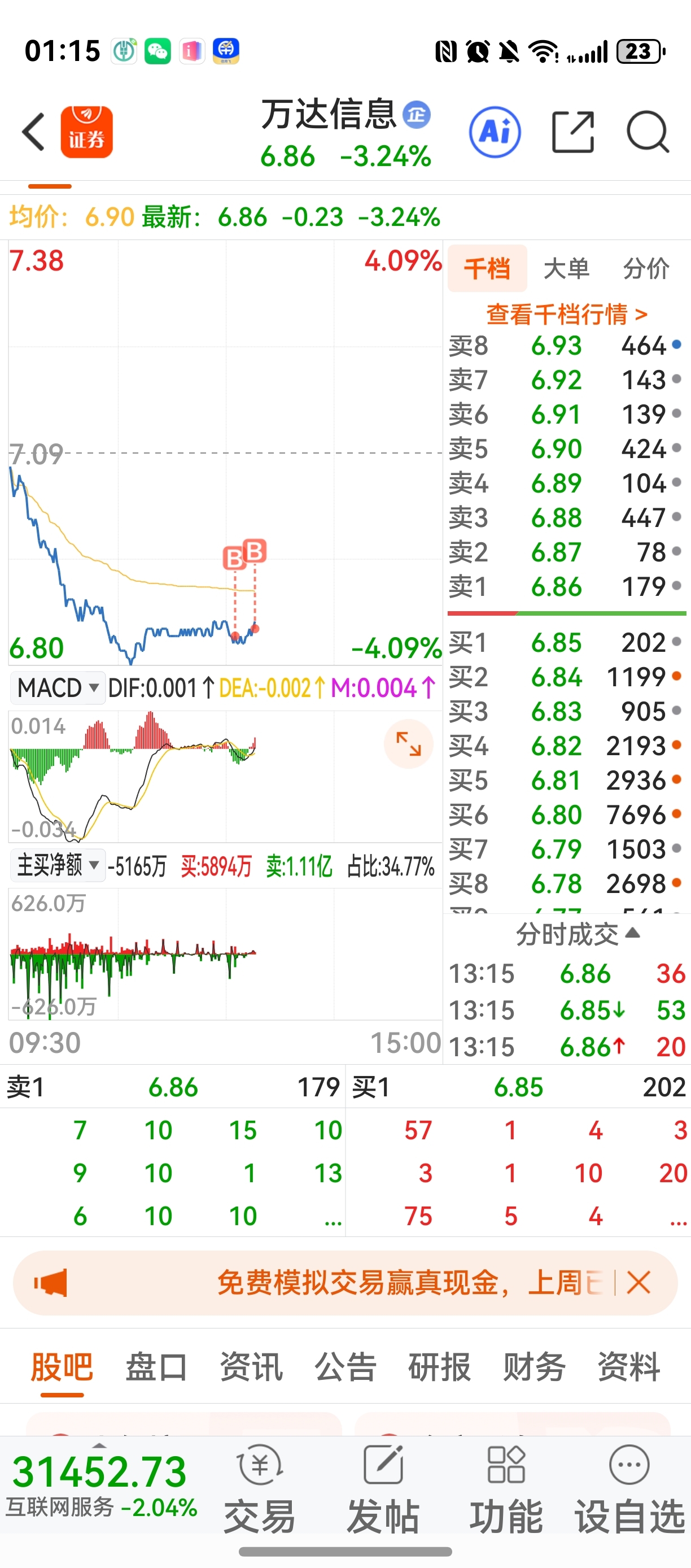 $万达信息(SZ300168)$ 出鬼子了,小机狗你有能耐砸不?