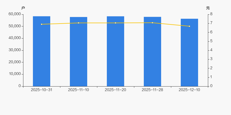 2025年10月31日至今,公司股东户数有所下降,区间跌幅为3.55%。2025年10月31日至2025年12月10日区间股价下降3.19%。