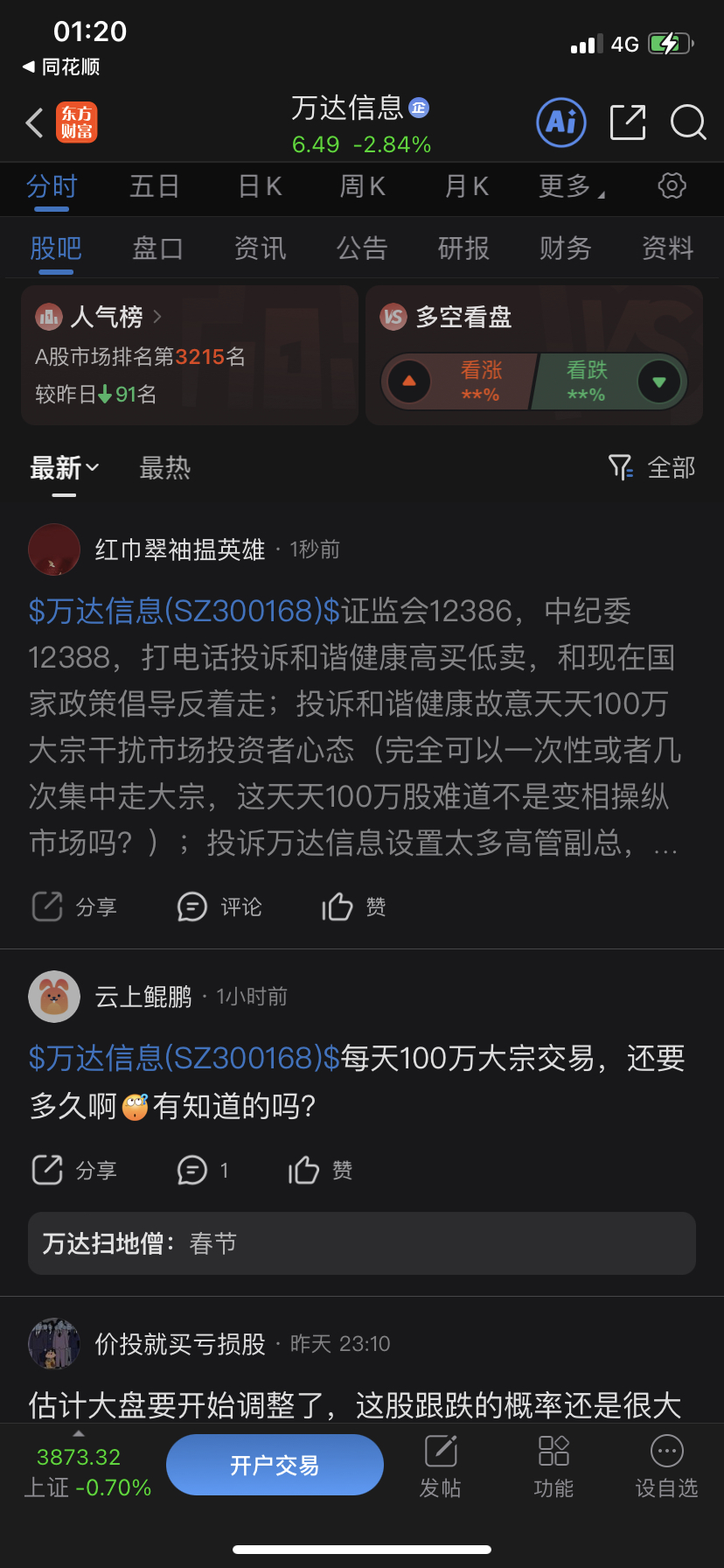 温馨提示: 1.根据《证券法》规定,禁止编造、传播虚假信息或者误导性信息,扰乱证券市场;2.用户在本社区发表的所有资料、言论等仅代表个人观点,与本网站立场无关,不对您构成任何投资建议。用户应基于自己的独立判断,自行决定证券投资并承担相应风险。《东方财富社区管理规定》