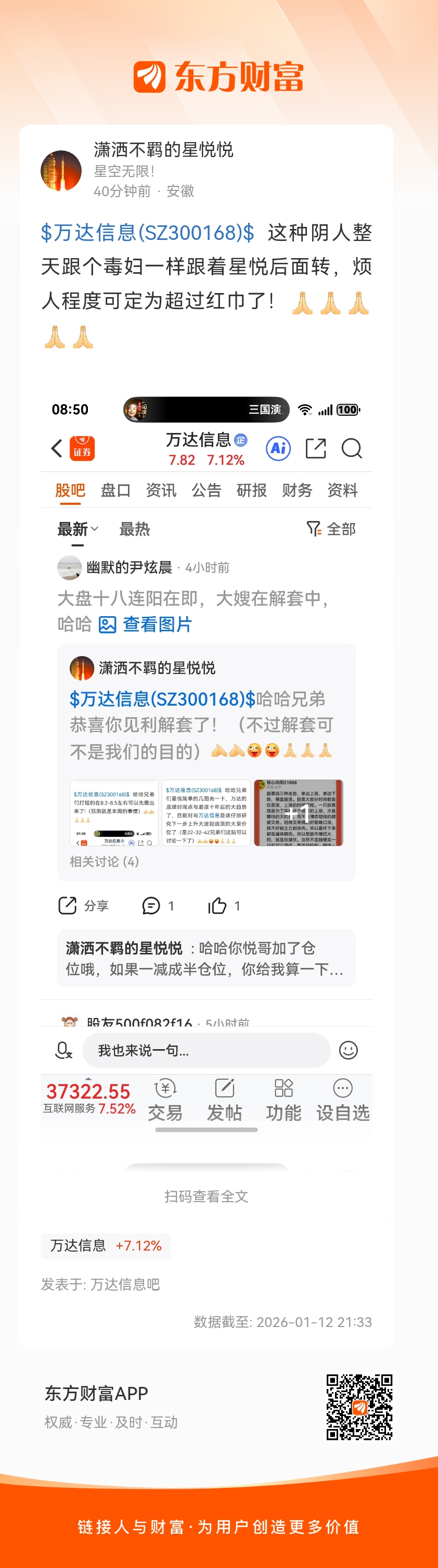 温馨提示: 1.根据《证券法》规定,禁止编造、传播虚假信息或者误导性信息,扰乱证券市场;2.用户在本社区发表的所有资料、言论等仅代表个人观点,与本网站立场无关,不对您构成任何投资建议。用户应基于自己的独立判断,自行决定证券投资并承担相应风险。《东方财富社区管理规定》