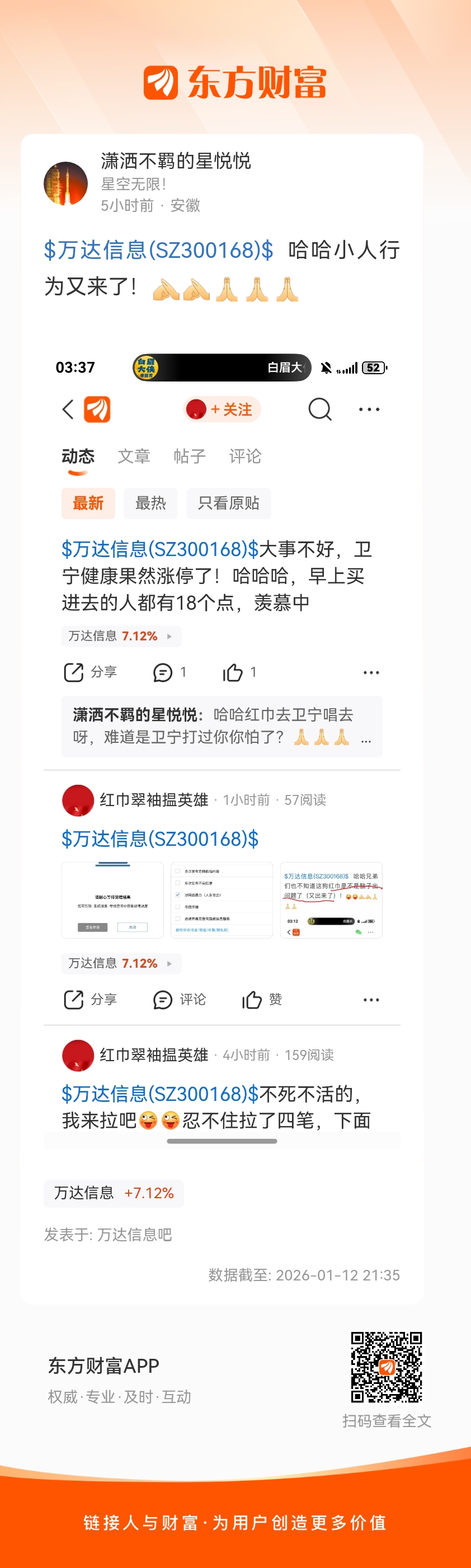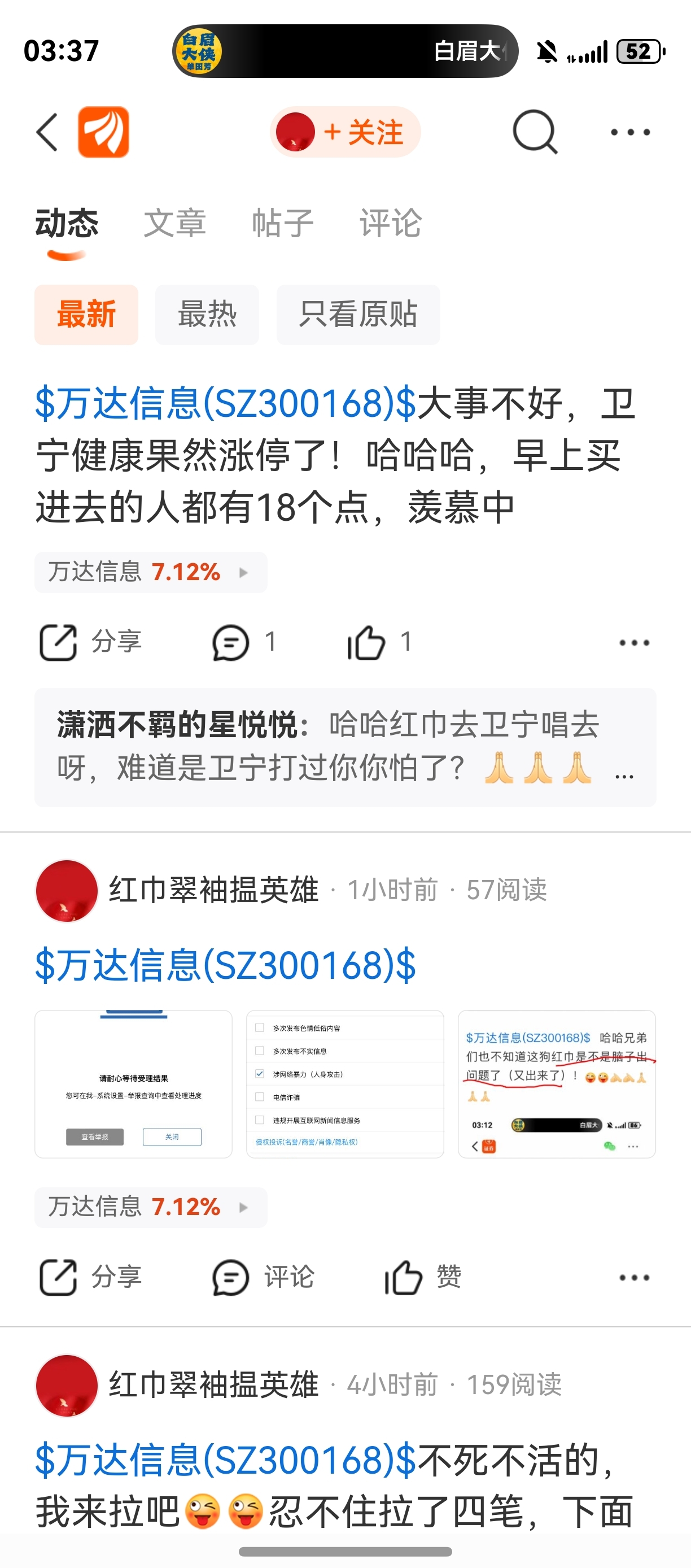 $万达信息(SZ300168)$  哈哈小人行为又来了!
