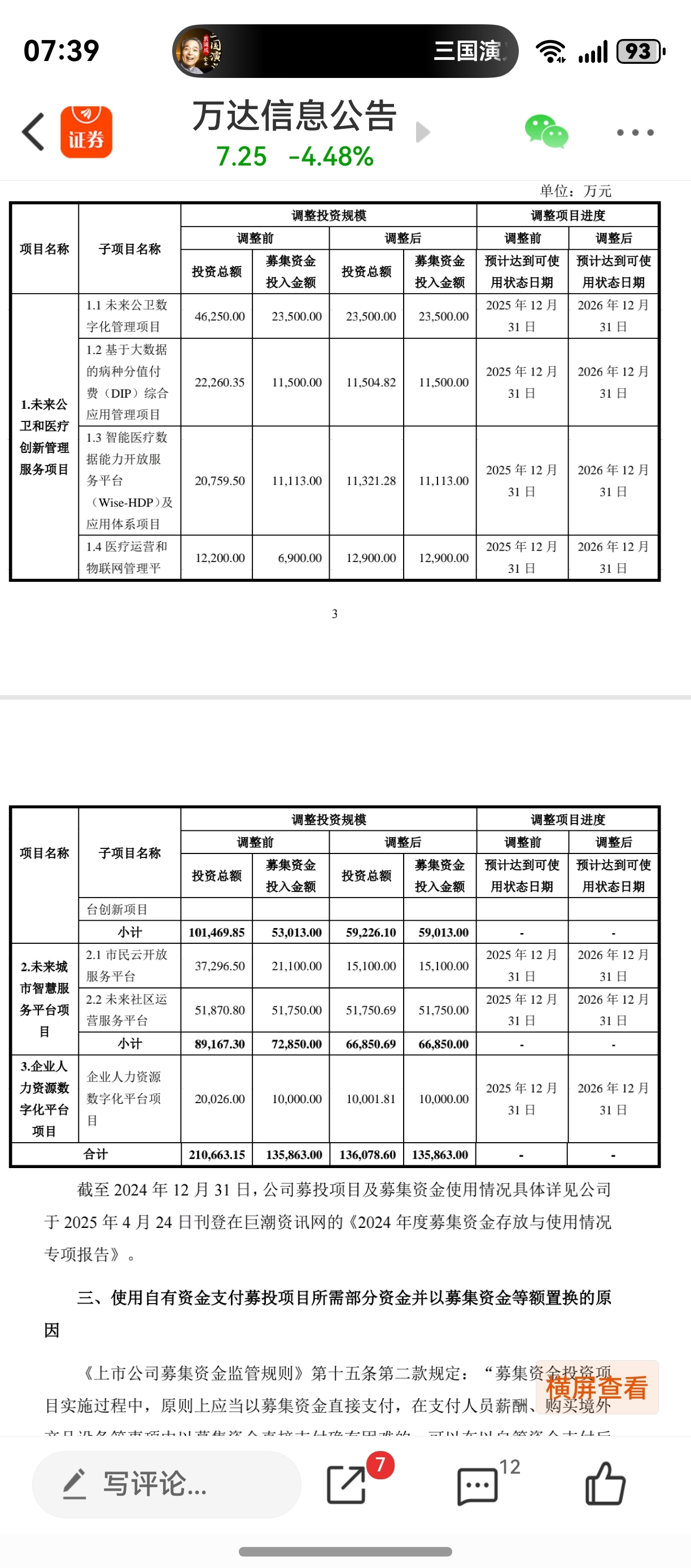 $万达信息(SZ300168)$ 针对红巾的挑战星悦就再发一贴,先冲的真假AI已经被叫停了(当然多数是蹭概念的多,包括是签了一个合作意向书的都有)但像万达这种真金白银投资近二十亿的不多,而且今年12年份就能落地花开的没几家,(老话说的半坛子货先乱动,满坛子关键时候真动)
