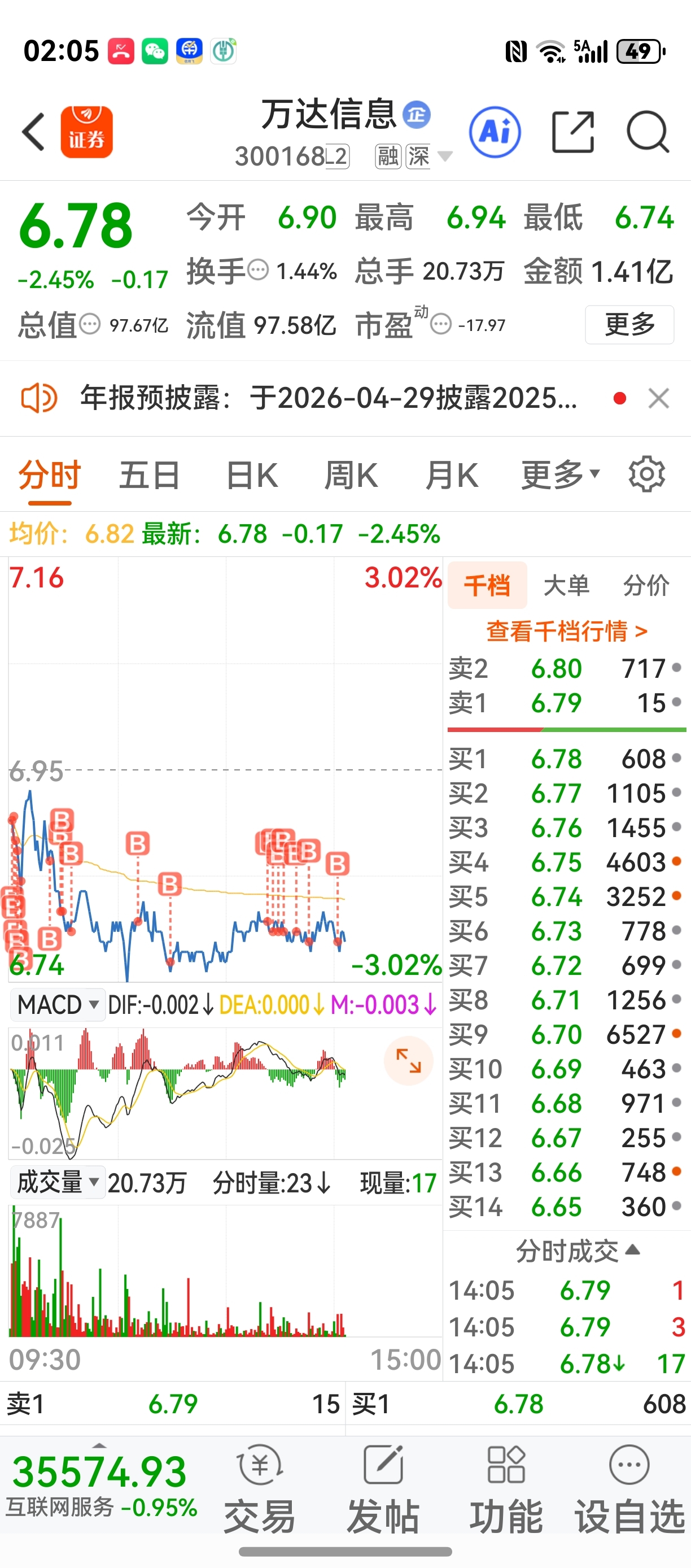 $万达信息(SZ300168)$ 今天就盯着你接,倒到670再让兄弟们接点就休息了!