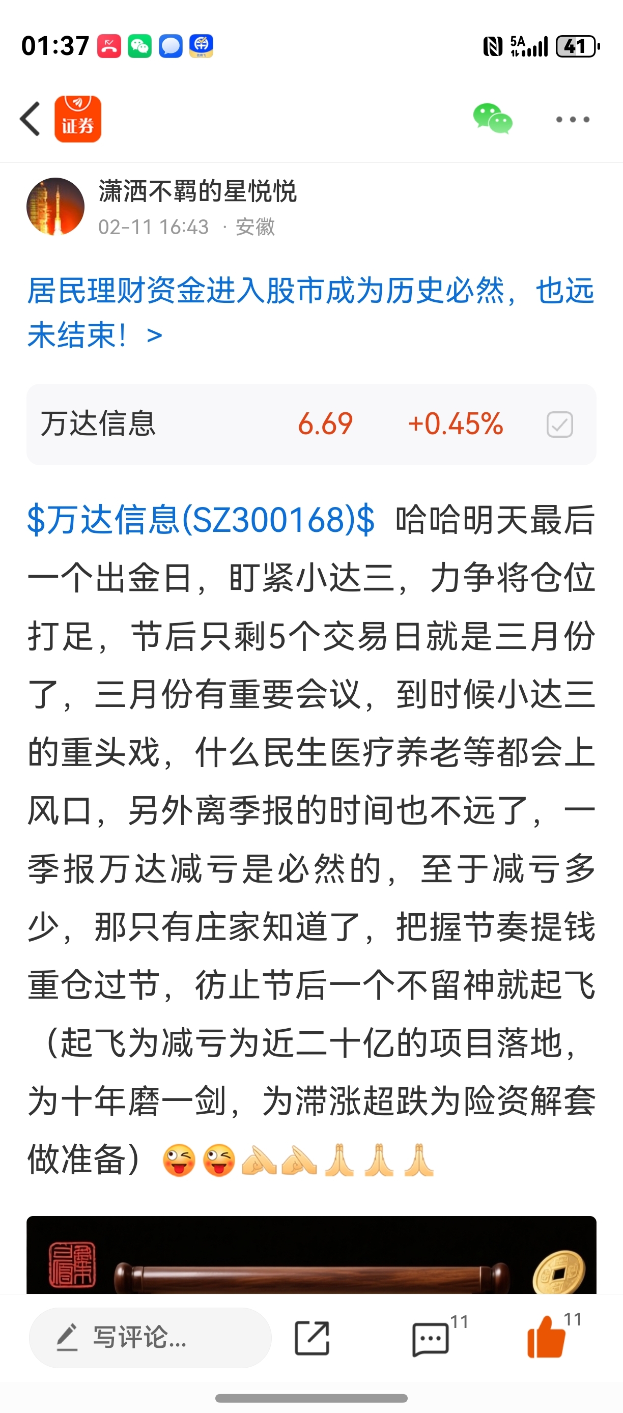 郑重声明:用户在财富号/股吧/博客等社区发表的所有信息(包括但不限于文字、视频、音频、数据及图表)仅代表个人观点,与本网站立场无关,不对您构成任何投资建议,据此操作风险自担。请勿相信代客理财、免费荐股和炒股培训等宣传内容,远离非法证券活动。请勿添加发言用户的手机号码、公众号、微博、微信及QQ等信息,谨防上当受骗!