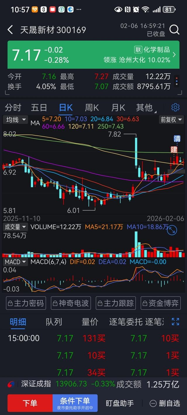 $天晟新材(SZ300169)$ 还好跑了,天晟新材是有功的,在这里面躲过了大盘大跌