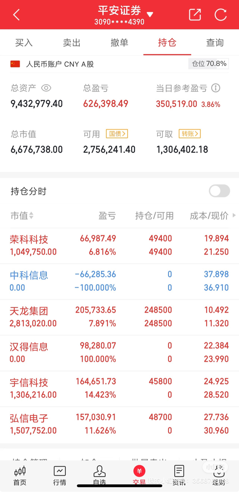 记录自己的美好生活:今天把中科信息和汉得信息出来了,目前持股的:天龙集团和荣科科
