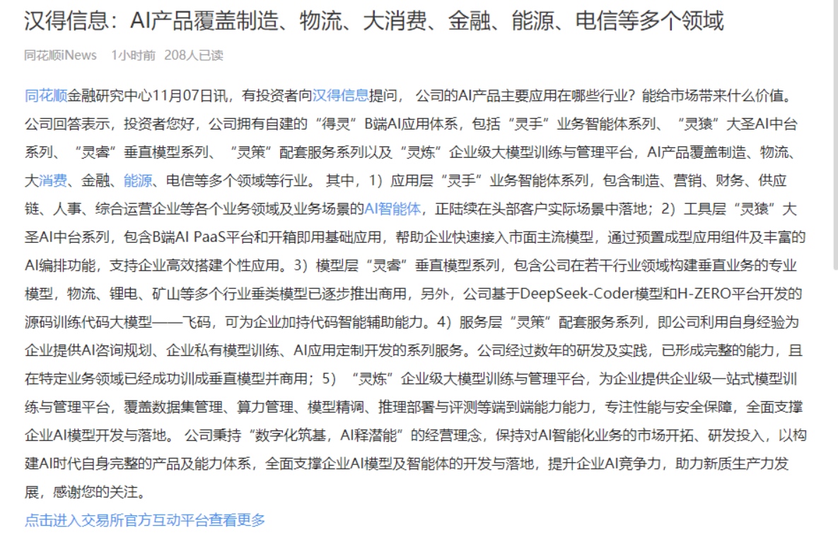 AI应用落地有业绩还能有谁?鼎捷大股东减持,汉得唯一有业绩的,还大市值,前十大股