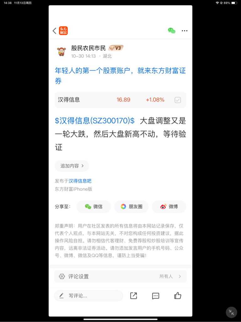 温馨提示: 1.根据《证券法》规定,禁止编造、传播虚假信息或者误导性信息,扰乱证券市场;2.用户在本社区发表的所有资料、言论等仅代表个人观点,与本网站立场无关,不对您构成任何投资建议。用户应基于自己的独立判断,自行决定证券投资并承担相应风险。《东方财富社区管理规定》
