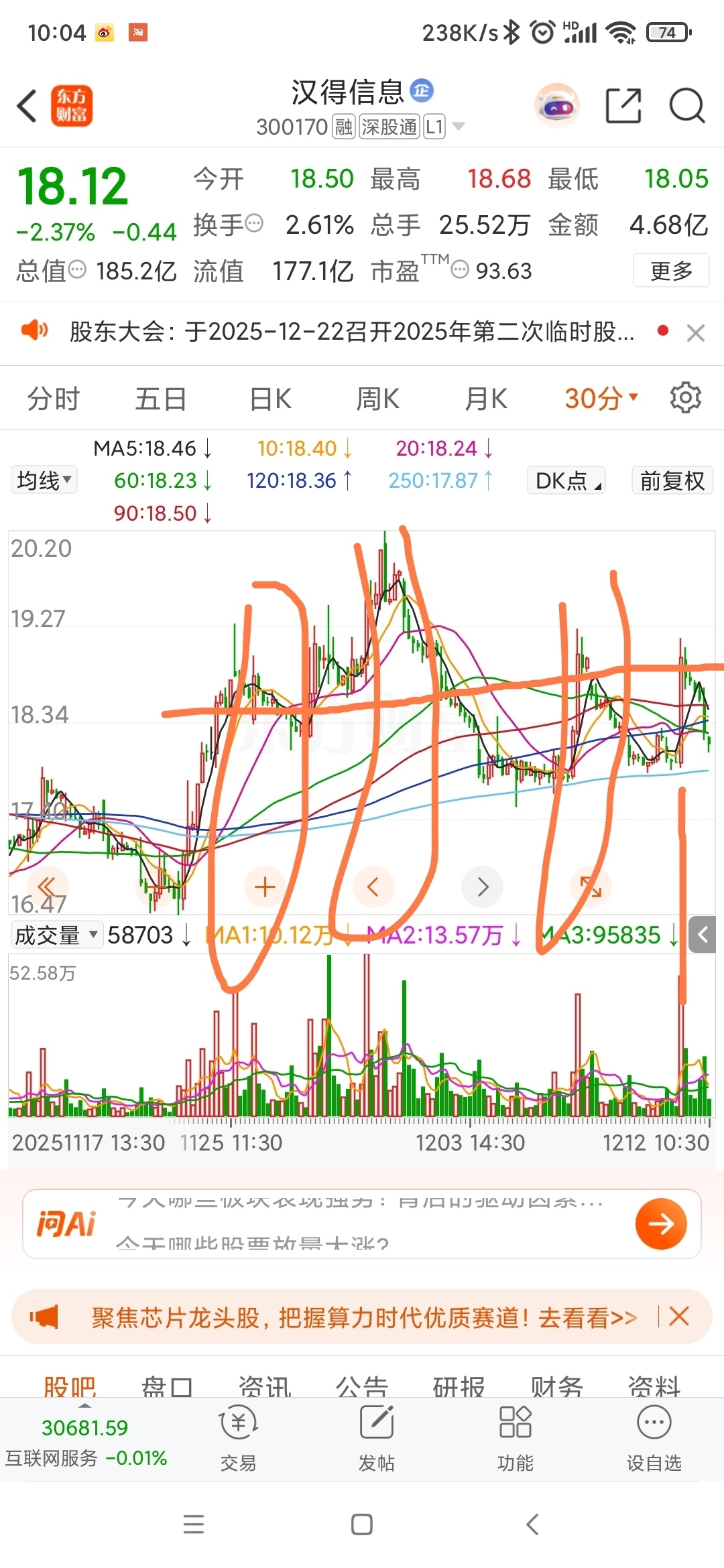 $汉得信息(SZ300170)$ 下周再跌周线级别调整