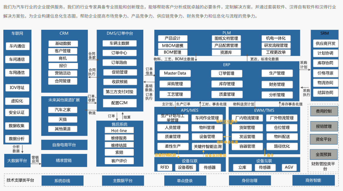 汉得信息作为中国领先的企业数字化综合服务商,早在 2012 年就成立了汽车行业事业部,目前拥有 100 多位专注于汽车行业的管理信息系统咨询和实施的专业人员,具备覆盖汽车行业核心信息系统的全方位服务能力。