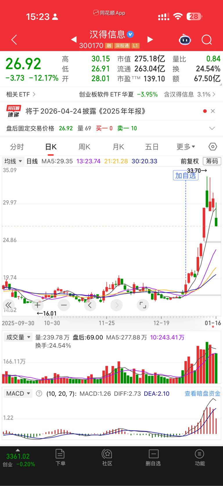 $汉得信息(SZ300170)$ 18看到33,不敢进,什么价位进呢