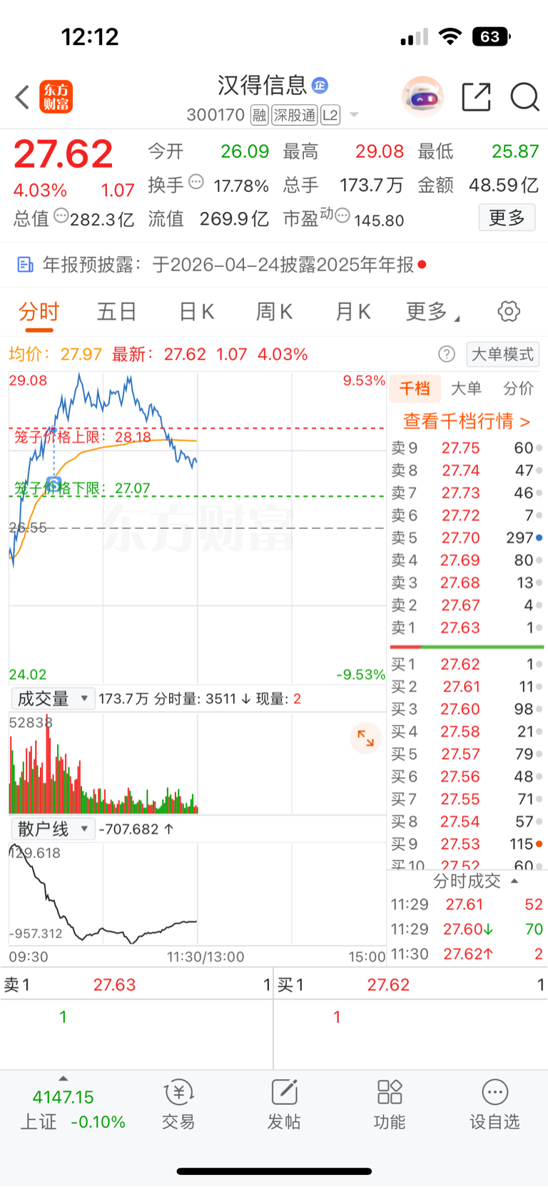 $汉得信息(SZ300170)$ 我跑了,我再也不信这个老汉砸毛了