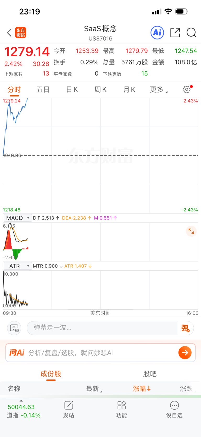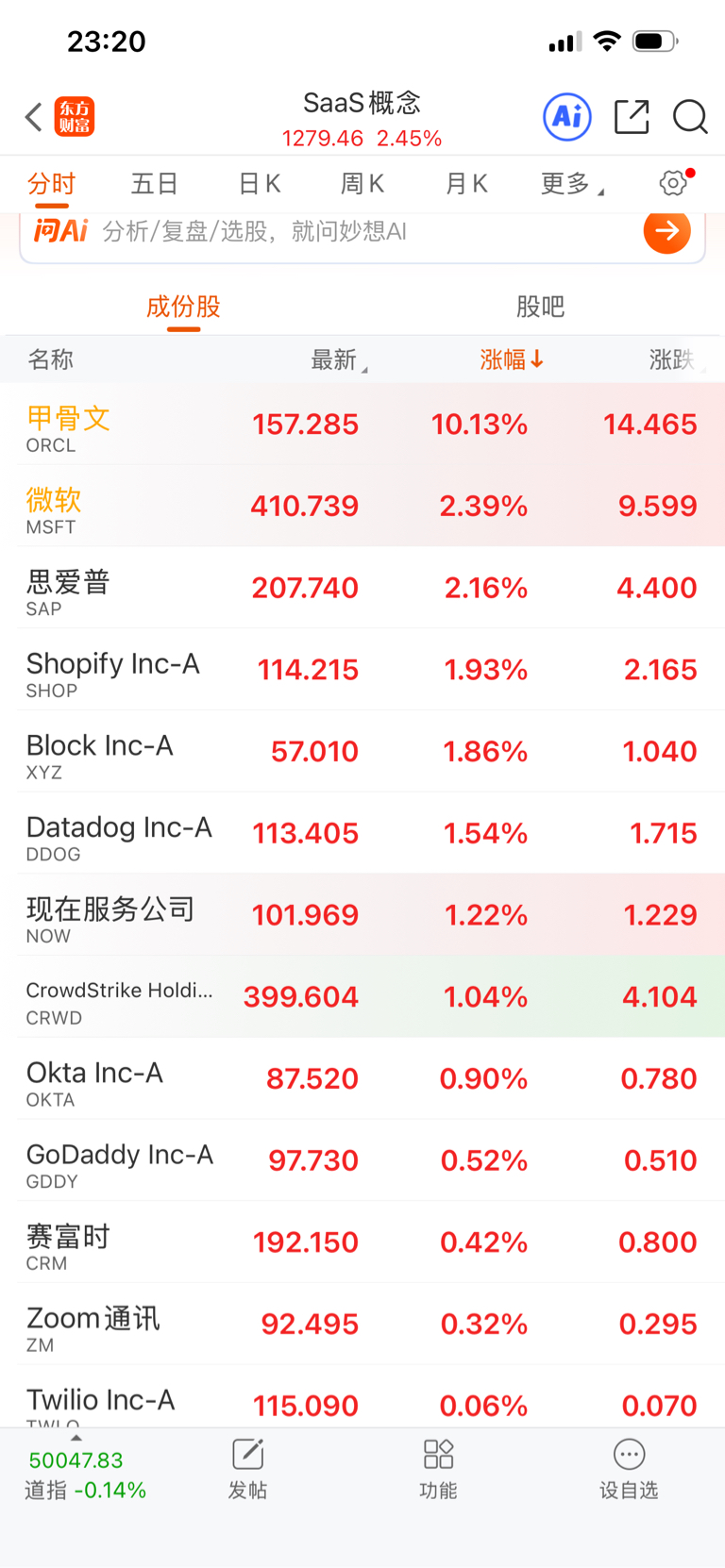 $汉得信息(SZ300170)$ 美股SaaS概念继续拉升,甲骨文大涨10%,